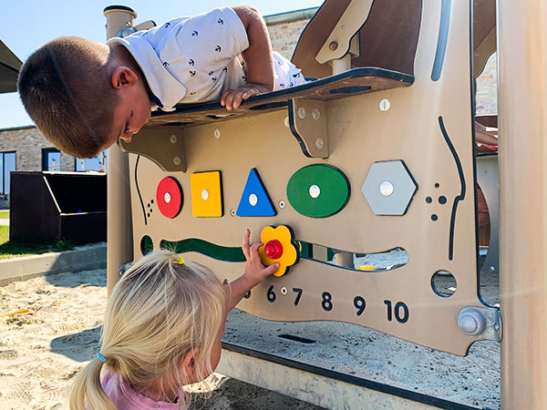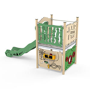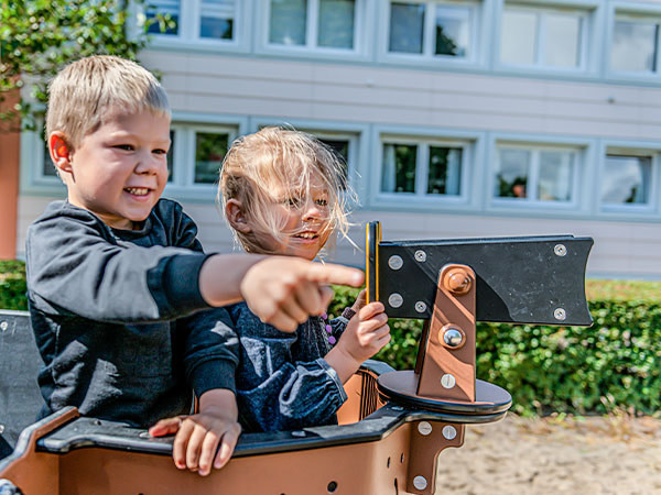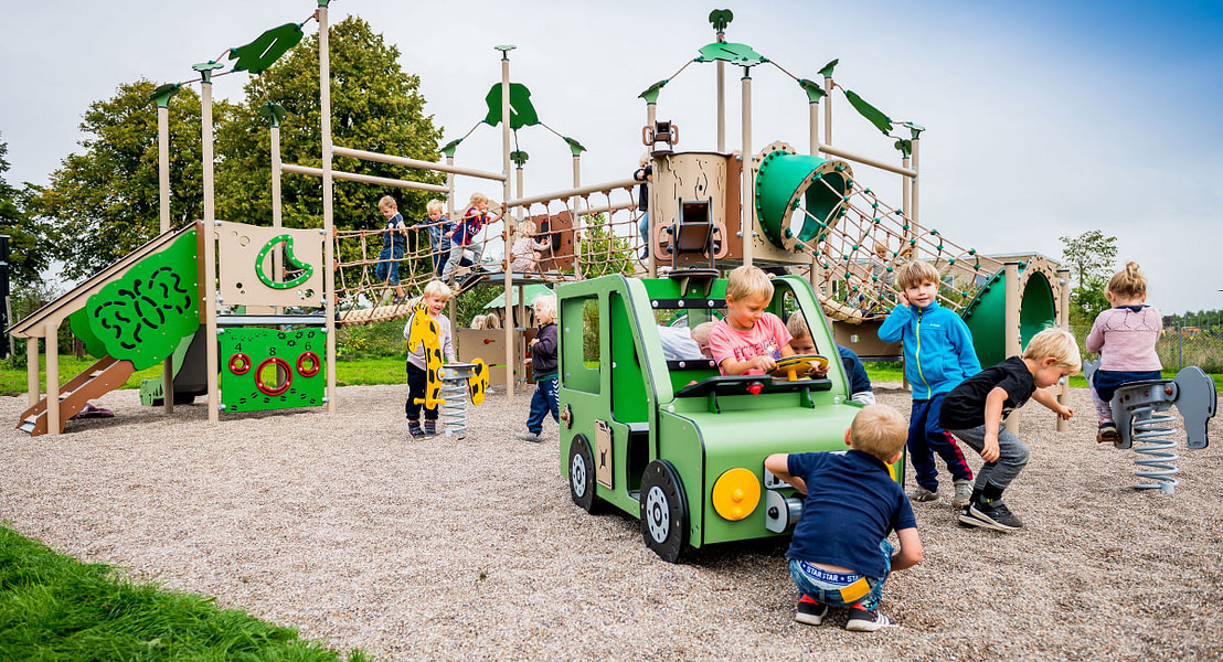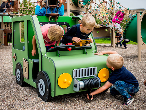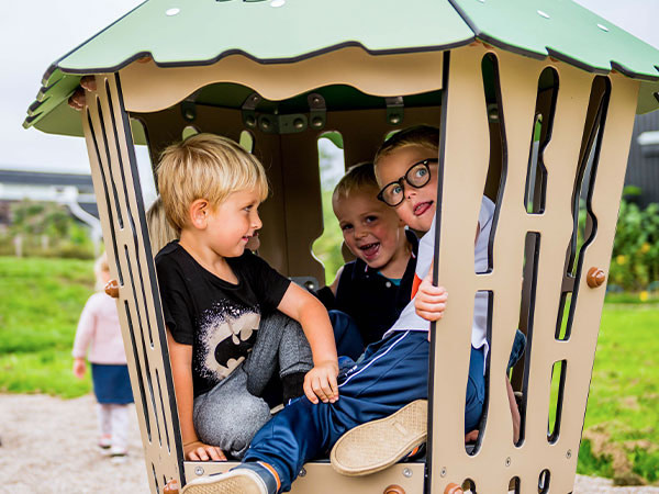Aus diesem Grund konzentrieren wir uns darauf, Spielgeräte zu entwickeln, die insbesondere das Schließen von Freundschaften sowie das sprachliche und gemeinsame Spielen unterstützen. Die für diese Altersgruppe ausgewählten Spielgeräte stammen aus unseren verschiedenen Themenwelten. Die Themenwelten eignen sich ideal dafür, Kinder zu Rollenspielen anzuregen und sie dabei zu unterstützen. Unsere Spielhäuser und Spielanlagen verfügen über ansprechende Details wie Fernrohre, Lebensmitteltheken, Dschungelhütten usw., die zum gemeinsamen Rollenspiel inspirieren.