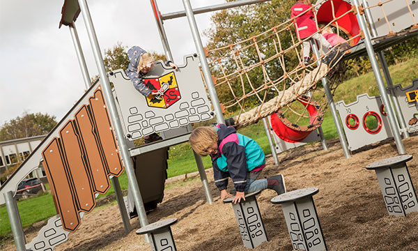 Wenn Dinge kombiniert werden, entstehen massenweise neue Möglichkeiten. Darüber wissen Kinder alles. Deshalb haben wir die Trittsteine und Wappen der Castle-Serie dicht zusammen platziert. Dies fördert die Vorstellungskraft der Kinder und kann in der pädagogischen Arbeit genutzt werden, um die Motorik und Sprachentwicklung zu stimulieren.