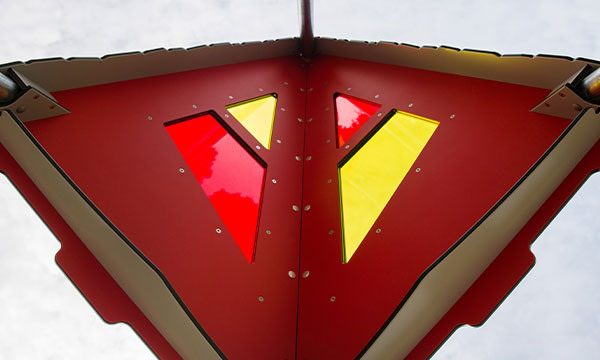 Es ist die Natur des Spiels, dass es sich die ganze Zeit entwickelt. Dies schafft Dynamik und setzt die Kreativität in Gang. Mit gelben und roten Fenstern lassen wir das Licht spielerisch durch das Dach herunterscheinen. Die Fenster werfen Hickelkästen auf den Boden, und sie bewegen sich, so wie sich die Sonne am Himmel bewegt. Die Schatten ändern sich, während die Kinder abwechselnd gelb und rot im Gesicht werden. Alles kann passieren, während Licht, Reflexion und Farben dazu beitragen, die Fantasie zu stimulieren.