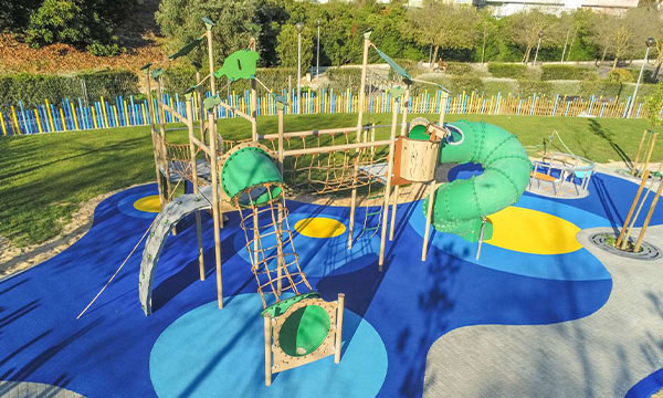 Wenn Sie einen inklusiven Spielplatz gestalten möchten, müssen Sie insbesondere zwei Punkte berücksichtigen: den Aufbau des Spielplatzes und die Barrierefreiheit. Wichtig ist, dass gehbehinderte Kinder bzw. Rollstuhlfahrerinnen und -fahrer Zugang zu den Spielgeräten haben. Somit ist der Fallschutzboden ein entscheidender Faktor. Gummifliesen oder Gussgummi sind die besten Lösungen, damit alle Kinder am Spiel teilhaben können. Mithilfe dieser Fallschutzböden ist es außerdem möglich, den Spielplatz in farbige Bereiche zu unterteilen. Dies kann als Hilfestellung für Kinder mit einer kognitiven Behinderung dienen.