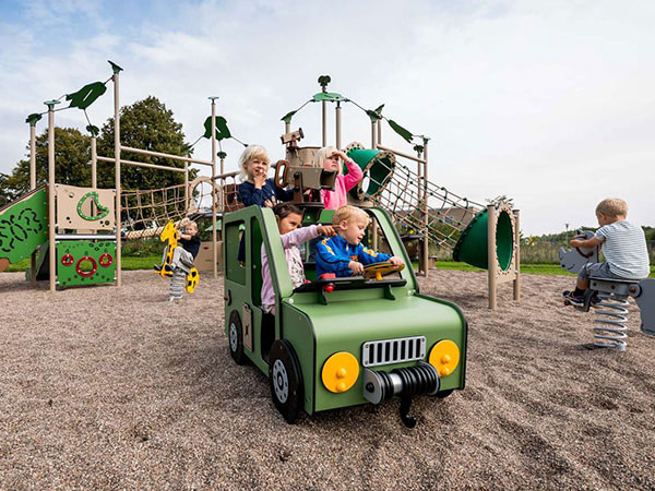 Häufig sind auch Schaukeln, Spielhäuser und Federwippgeräte Teil des Spielplatzes. Schaukeln sind ein echter Klassiker, von dem Kinder einfach nicht genug bekommen können. Und das gilt für Kinder aller Altersgruppen. Dank der zahlreichen verfügbaren Designs werden Spielhäuser und Federwippgeräte häufig so ausgewählt, dass sie das gewünschte Thema unterstützen. Ganz gleich, ob ein Hai-Federwippgerät für den Piratenspielplatz oder ein Spielhaus im Stil eines Geländewagens für die Dschungelforscher – für jedes Thema gibt es die passenden Spielgeräte.
