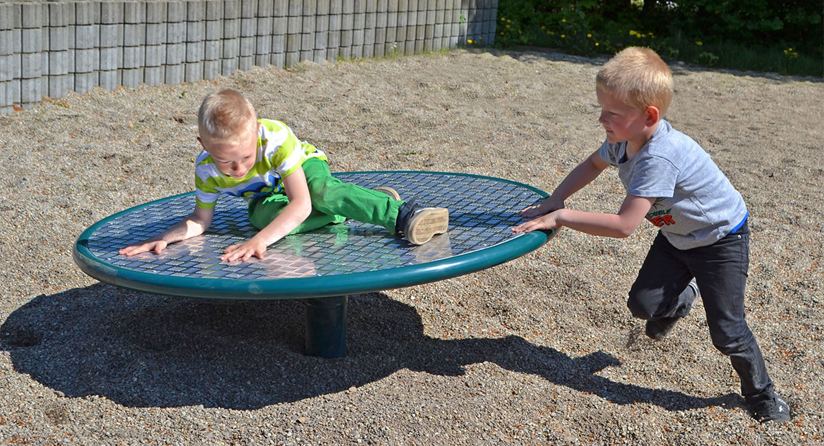 Kinder trainieren ihre Kooperations- und Kommunikationsfähigkeiten, wenn sie gemeinsam das Karussell oder den Kreisel in Bewegung bringen: „Sollen wir nach links oder nach rechts drehen? Wie schnell wollen wir uns drehen?“ Sich drehende Spielgeräte machen den Kindern also Spaß und wirken sich gleichzeitig positiv auf ihre kooperativen Fähigkeiten aus.