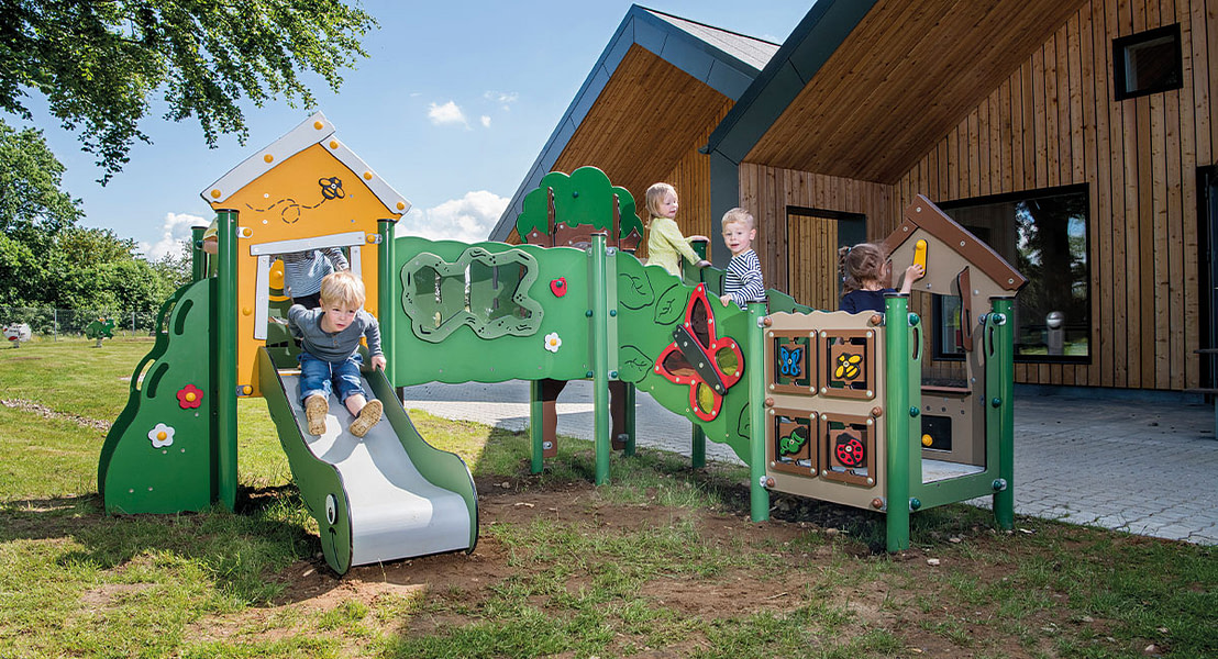 Krippen gefällt insbesondere unsere LEDON-Themenwelt MiniPlay, die für die Kleinsten entwickelt wurde. Die Themenwelt wurde in Zusammenarbeit mit Kindern und pädagogischen Fachkräften entwickelt und so gestaltet, dass sie sowohl die Kinder bei ihrer Entwicklung als auch die Erzieherinnen und Erzieher bei ihrer Arbeit unterstützen. Die Spielanlagen weisen beispielsweise genau die richtige Höhe auf, sodass die pädagogischen Fachkräfte den Kindern helfen können, ohne dabei unangenehme Positionen einnehmen zu müssen.