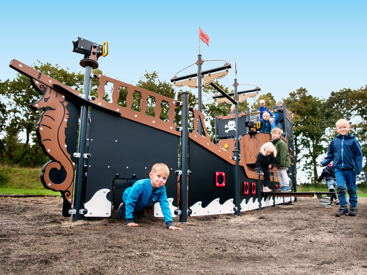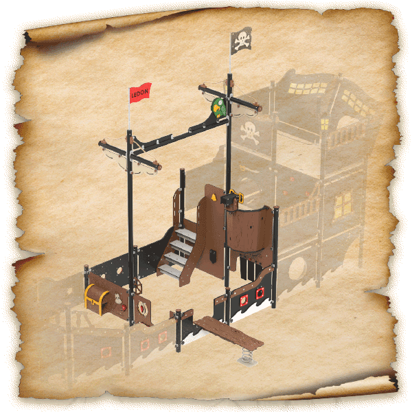 LEDON Pirates soll Kindern das Erlebnis eines echten Piratenspielplatzes bieten. Das Spielschiff mit all seinen thematischen Details und Spielaktivitäten trägt dazu bei, die Geschichten zum Leben zu erwecken. So können Kinder in ihren eigenen fantasievollen Spielen aufgehen. Dank der zahlreichen verschiedenen Spielbereiche können viele Kinder gleichzeitig auf den Schiffen spielen, wodurch auch ein Spielwert für eine breite Altersgruppe geschaffen wird.