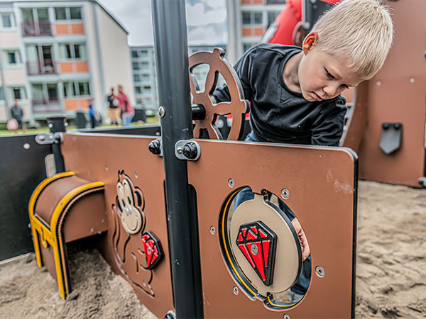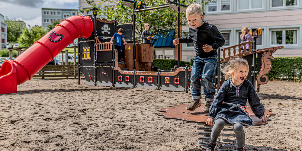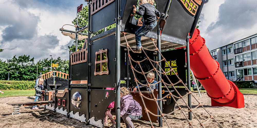 Eine gute Spielaktivität ist eine sichere Spielaktivität. Und auch wenn wir ein klassisches Piratenschiff nachahmen möchten, ist unser Spielschiff natürlich nicht annähernd so rau und gefährlich wie ein echtes Piratenschiff – tatsächlich ist es überhaupt nicht gefährlich. Im Gegenteil. Wenn wir bei LEDON Spielgeräte für Kinder entwickeln, hat Sicherheit oberste Priorität.