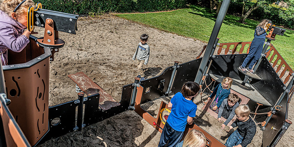 Die Spielaktivitäten auf dem Piratenspielplatz wurden zu 100 % von Kindern inspiriert und basieren auf den Ideen von Kindern zu Spielaktivitäten rund um das Thema Piraten.