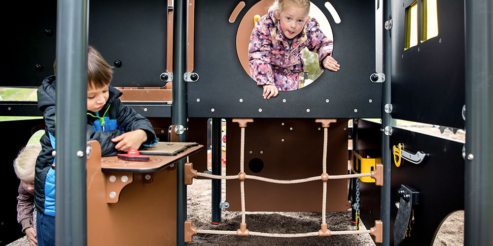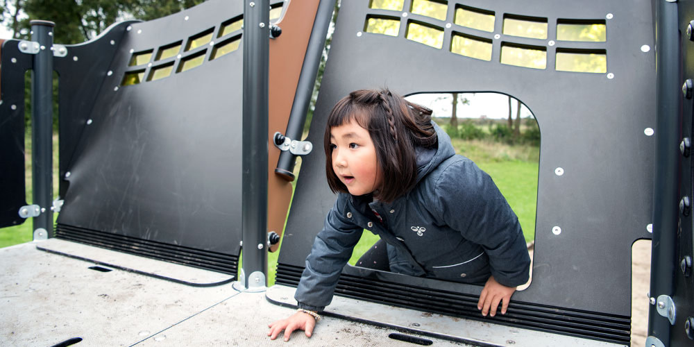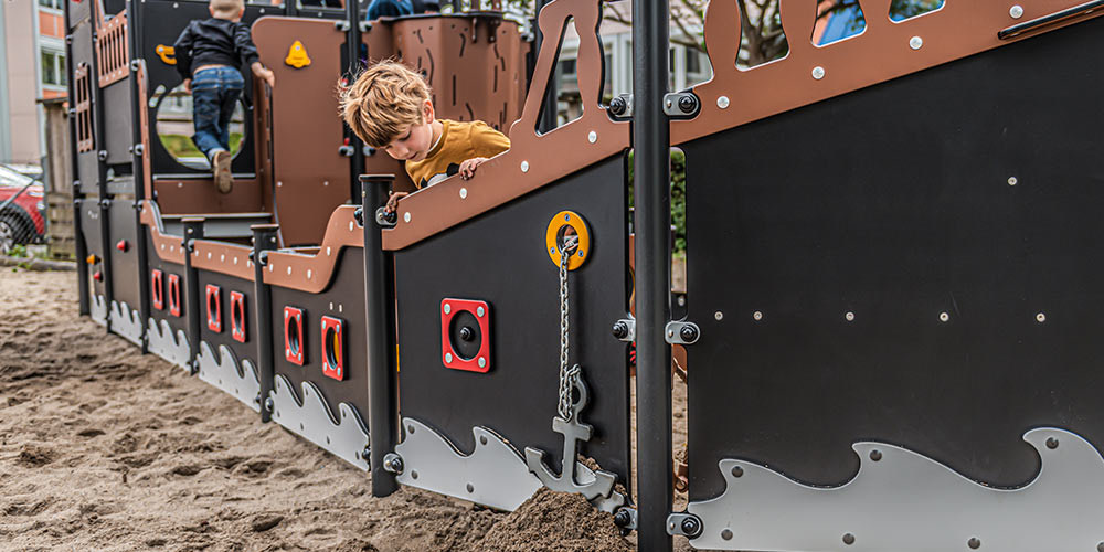 Der Vorteil für unsere Kunden ist, dass unsere Produkte nur ein absolutes Minimum an Wartung benötigen. Die Seitenteile unseres Spielschiffs bestehen beispielsweise aus Polyethylenplatten, die ungiftig, wartungsarm und vollständig wiederverwertbar sind. Somit können sich Kinder bedenkenlos gegen das Spielschiff lehnen und auf dieses hinaufklettern.
