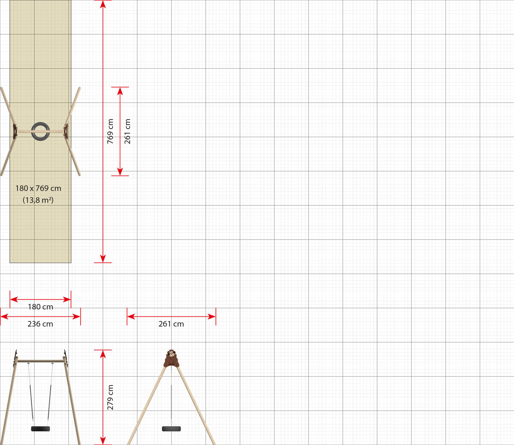 Das Gestell ist extra hoch, damit es auch von älteren Kindern und Erwachsenen genutzt werden kann, die gern schaukeln möchten.