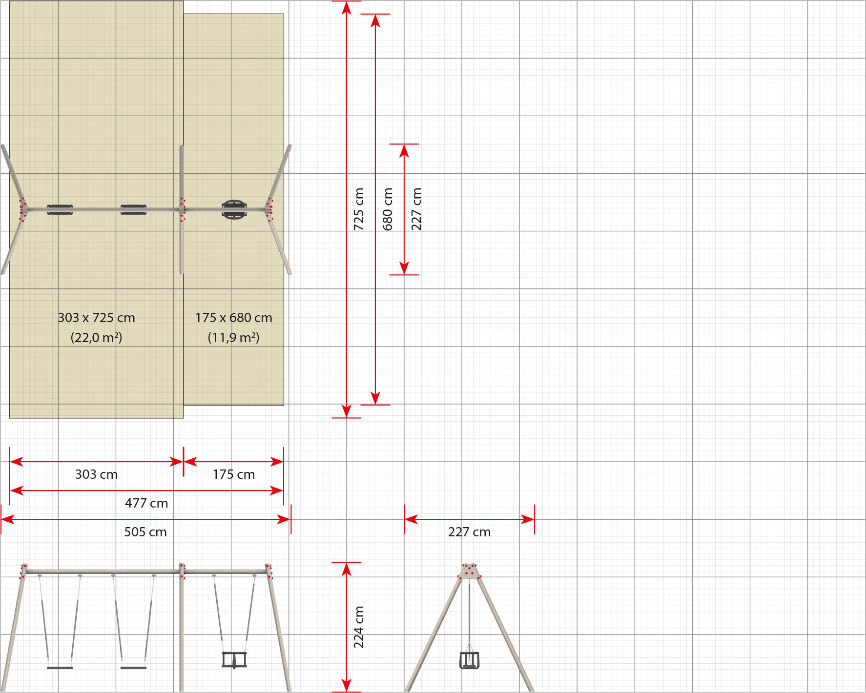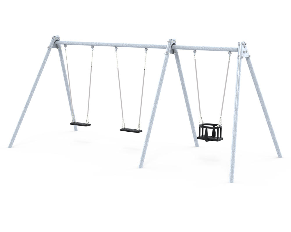 Dank eines modularen Schaukelgestells können mehrere Kinder gleichzeitig schaukeln. Darüber hinaus ist das Schaukelgestell in mehreren unterschiedlichen Kombinationen erhältlich, die an spezifische Altersgruppen angepasst werden oder eine breite Altersgruppe abdecken können, je nachdem, welcher Sitz gewählt wird.