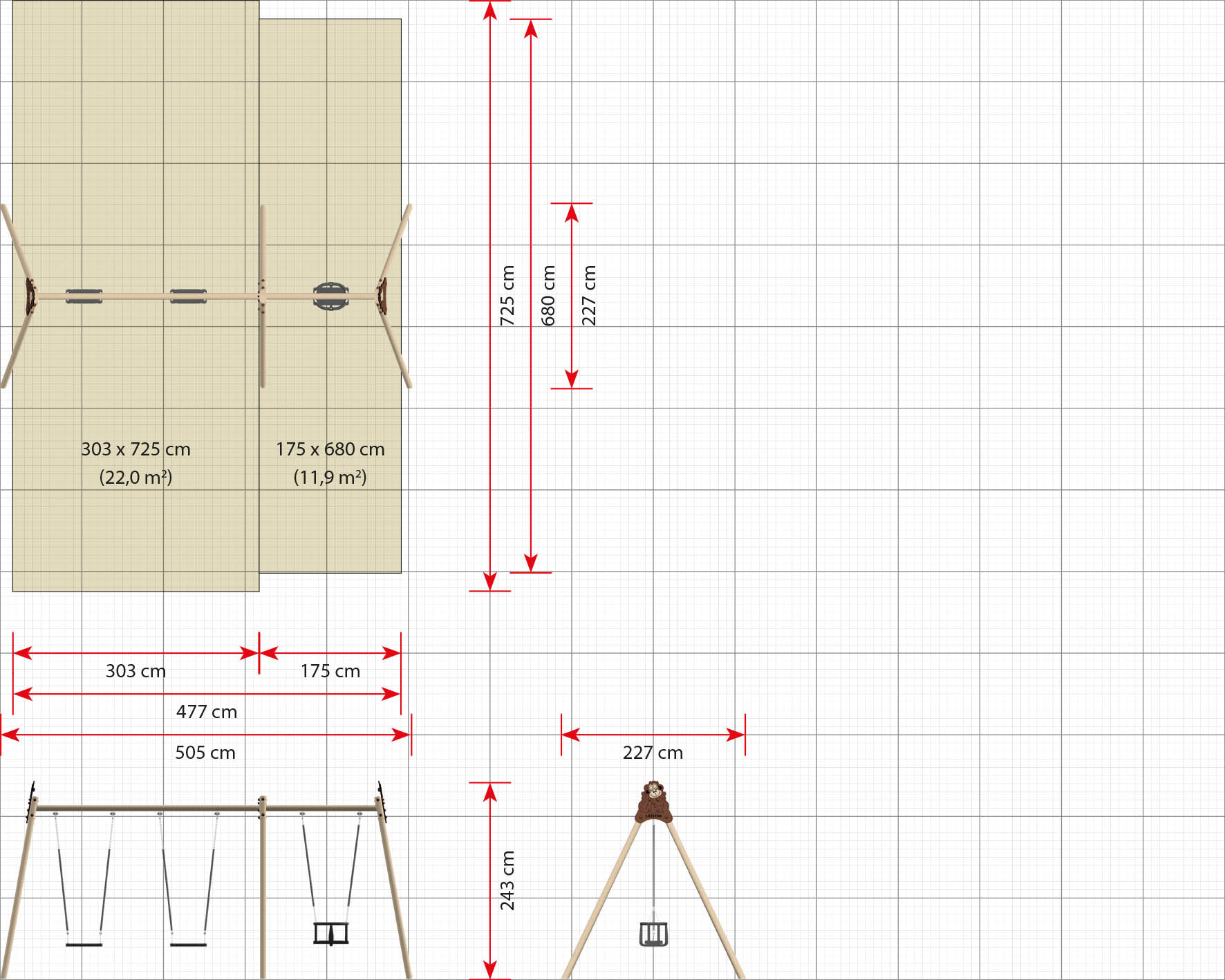 Dank eines modularen Schaukelgestells können mehrere Kinder gleichzeitig schaukeln. Darüber hinaus ist das Schaukelgestell in mehreren unterschiedlichen Kombinationen erhältlich, die an spezifische Altersgruppen angepasst werden oder eine breite Altersgruppe abdecken können, je nachdem, welcher Sitz gewählt wird.