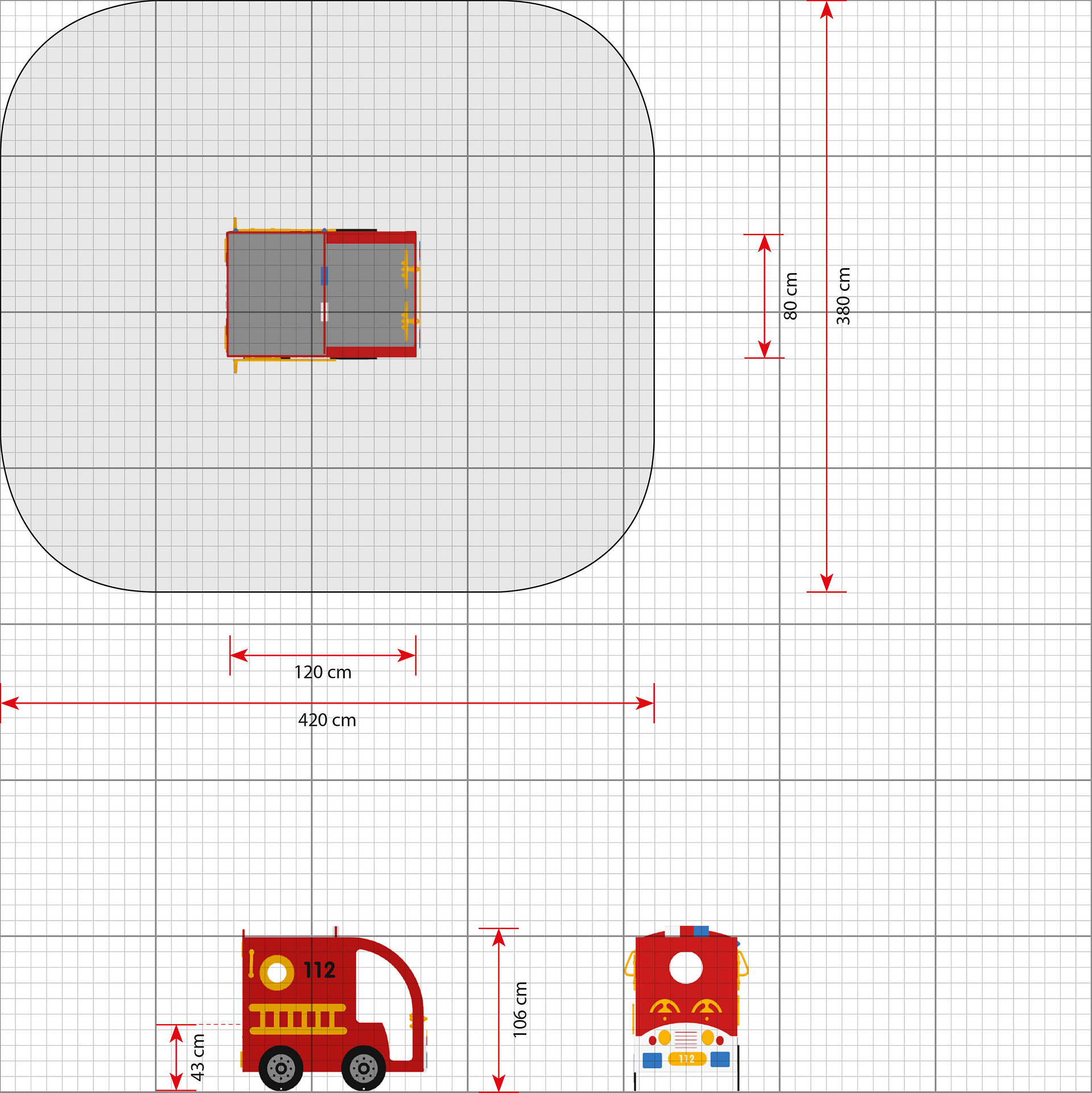 Das Mini-Feuerwehrauto ist kompakter und platzsparender und passt somit auf die meisten Spielplätze. Dennoch bietet es denselben Spielwert, denn das Mini-Feuerwehrauto hat ebenfalls bewegliche Teile und Platz für mehrere Kinder. Außerdem hat es ein thematisches Design mit einer Leiter, Blinklichtern und einem Fenster, aus dem man herausgucken kann. Das alles trägt dazu bei, die Fantasie der Kinder anzuregen und sie dazu zu inspirieren, ihre eigenen Spiele zu entwickeln.