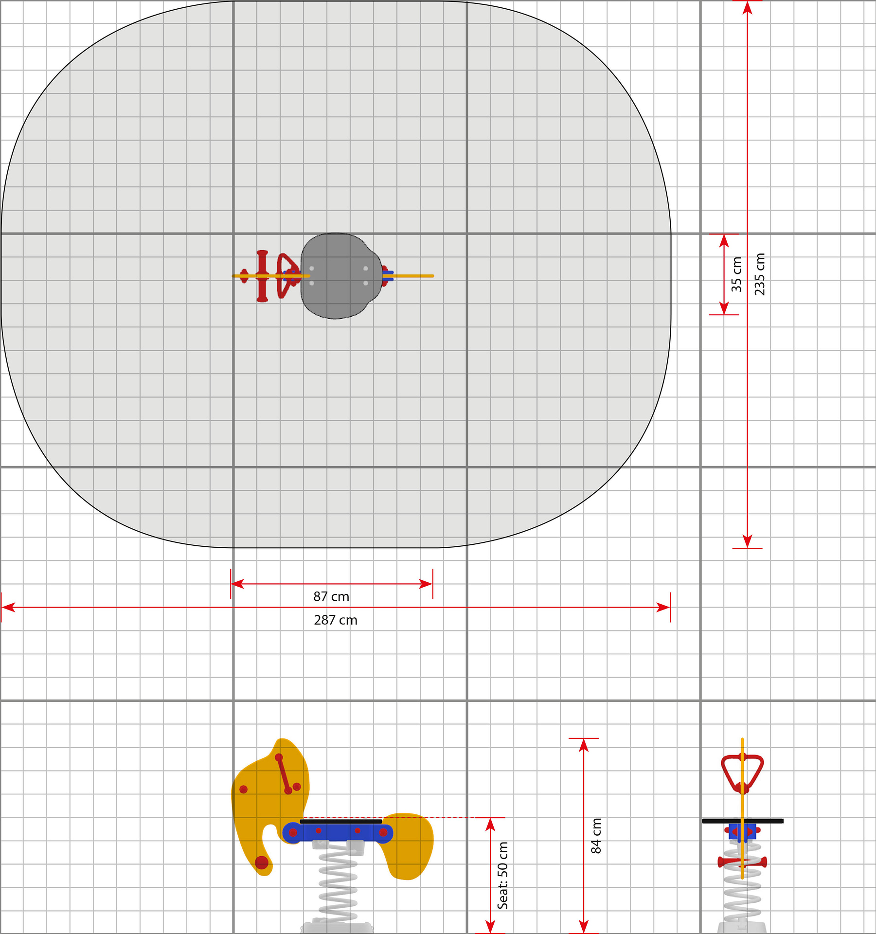 Die Federwippgeräte sind alle aus wartungsarmen Materialien gefertigt. Sie haben unter anderem ergonomische Nylongriffe, die das Risiko von Gebissverletzungen minimieren und dafür sorgen, dass die Hände der Kinder bei Frost nicht an ihnen haften bleiben.