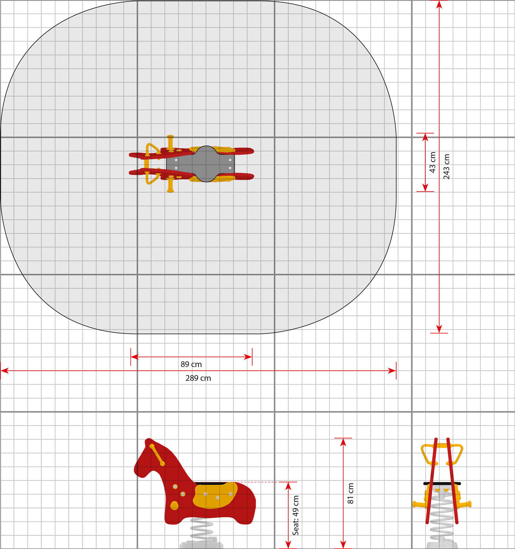 Eine 3 mm dicke Gummierung auf dem Sitz stellt sicher, dass die Kinder sicher sitzen – auch beim wilden Wippen.