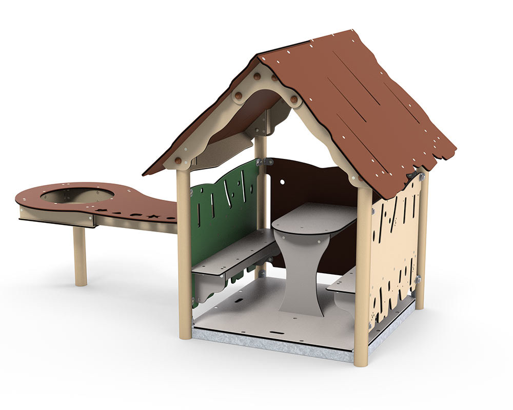 Lin ist eines von sieben unterschiedlichen Spielhäusern der Explore-Serie von LEDON. Neben zwei Bänken und einem Tisch ist Lin mit einem Matschtisch ausgestattet, der von mehreren Kindern gleichzeitig verwendet werden kann. Das Spielen mit Sand und Wasser stimuliert Tastsinn, Feinmotorik und Kreativität. Die Feinmotorik ist wichtig für die Entwicklung der Hände und Greifmuster, die wiederum fürs Schreiben wichtig sind. Die Böden des Spielhauses sind mit einer speziell entwickelten, körnigen und damit rutschfesten Oberfläche beschichtet. Daher wird kein zusätzlicher Fallschutzboden benötigt und das Spielhaus kann auf dem Rasen stehen.