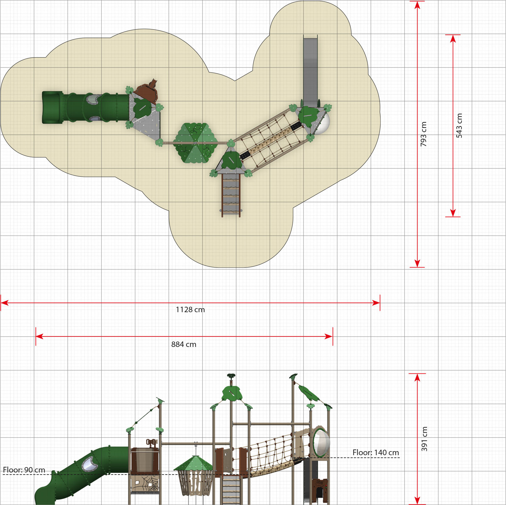 Ihr asymmetrischer Aufbau macht Arkon zu einer der spannendsten Spielanlagen der Explore-Serie. Sie lädt dazu ein, auf neue Art und Weise zu spielen – zum Beispiel in der integrierten Dschungelhütte zwischen den beiden Türmen. Die Dschungelhütte ist beweglich und besonders beliebt bei Kindern, die Verstecken spielen. In einem der Türme erhält man über zwei Stufen Zugang zur äußerst beliebten Röhrenrutsche. Dank der Starthöhe von 90 cm und dem eingebauten Fenster, das für Licht sorgt, können sich alle Altersgruppen am Spiel beteiligen.