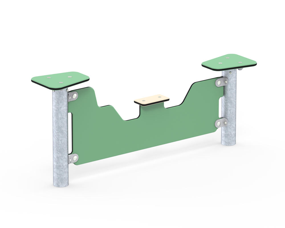 Boomer ist eines von mehreren Balancier-Elementen der Basic-Reihe. Seine Trittflächen sind in einem gut zugänglichen Abstand angeordnet. Die unterschiedlichen Höhen sorgen dahingegen für eine kleine Herausforderung, wenn die Kinder den Schwebebalken überqueren.