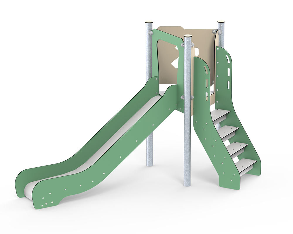 Der Spielturm Bard bietet auf kleinem Raum die grundlegendsten Spielaktivitäten. Gleichzeitig umfasst er auch eines der aufregendsten Elemente eines Spielplatzes: eine Rutsche.