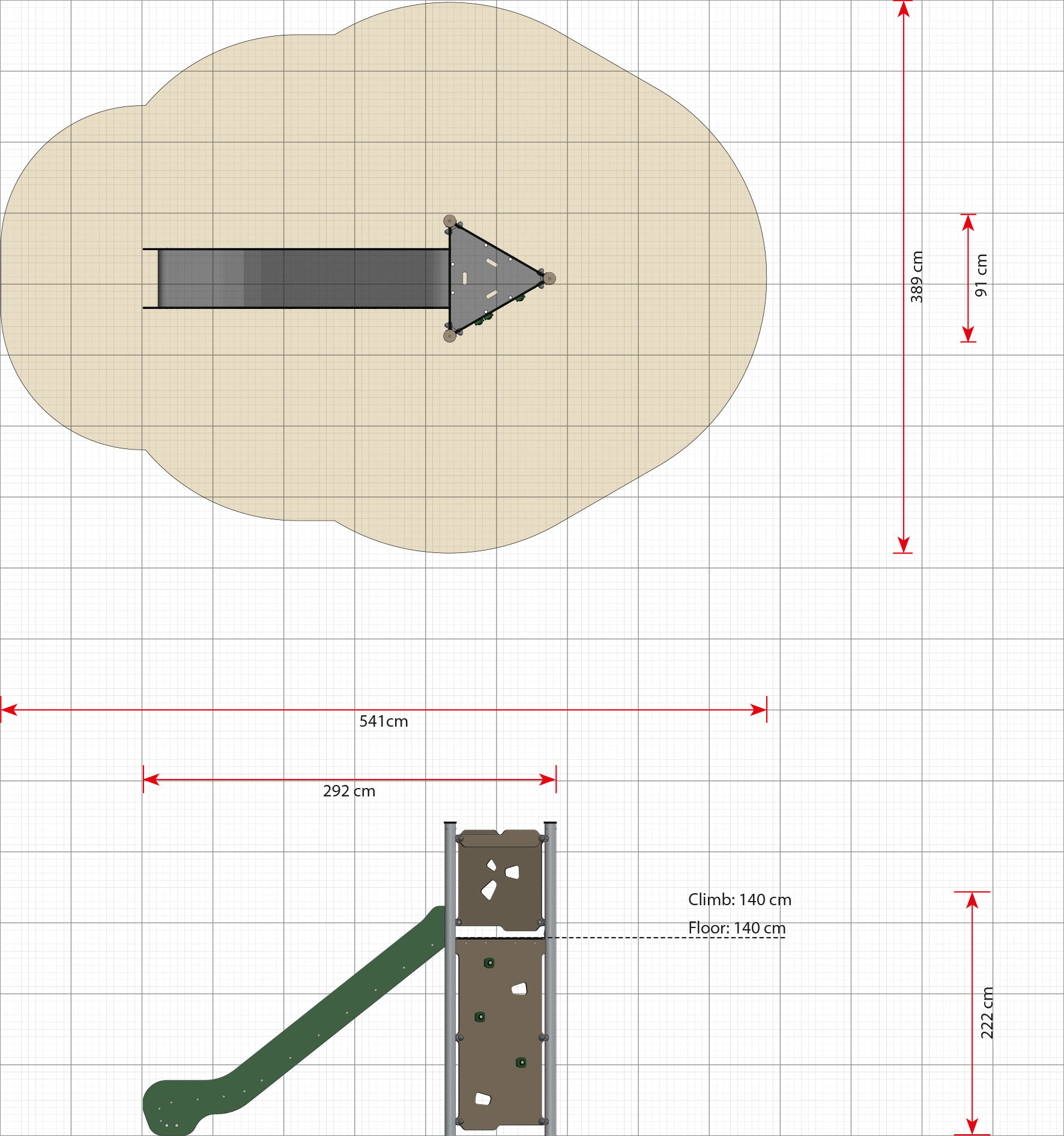 Rutsche und Kletterwand sorgen für Spaß und Herausforderungen