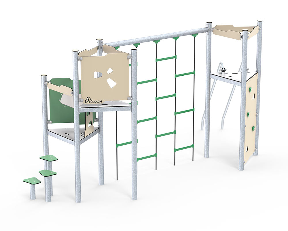 Bei all unseren Modellen der Basic-Reihe haben wir den Fokus darauf gelegt, kompakte Türme mit minimalem Platzbedarf zu entwickeln. Dadurch erhalten Sie eine Spielanlage zu einem erschwinglichen Preis und sparen gleichzeitig auch beim Fallschutzboden Kosten ein, da hier ebenfalls eine kleinere Fläche benötigt wird. Dies gilt auch für die Modelle mit mehreren Spieltürmen, die über ein Kletternetz miteinander verbunden sind. Auch hier nimmt das Kletternetz nur wenig Raum ein und erfordert nur einen kleinen Fallschutzboden. So können wir unsere Spielgeräte nicht nur zu einem erschwinglichen Preis anbieten. Wir sorgen auch dafür, dass sie Spielspaß sowie eine Herausforderung bieten, um die natürliche Entwicklung von Kindern zu fördern.