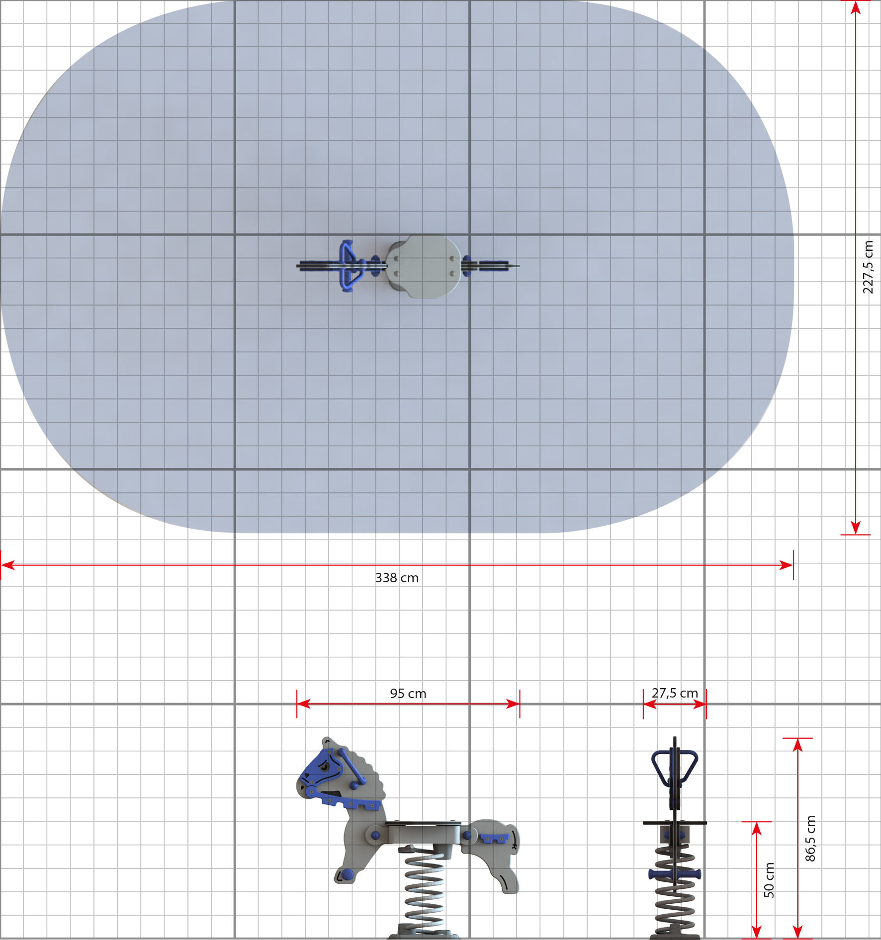 Eine 3 mm dicke Gummierung auf dem Sitz stellt sicher, dass die Kinder sicher sitzen – auch beim wilden Wippen.