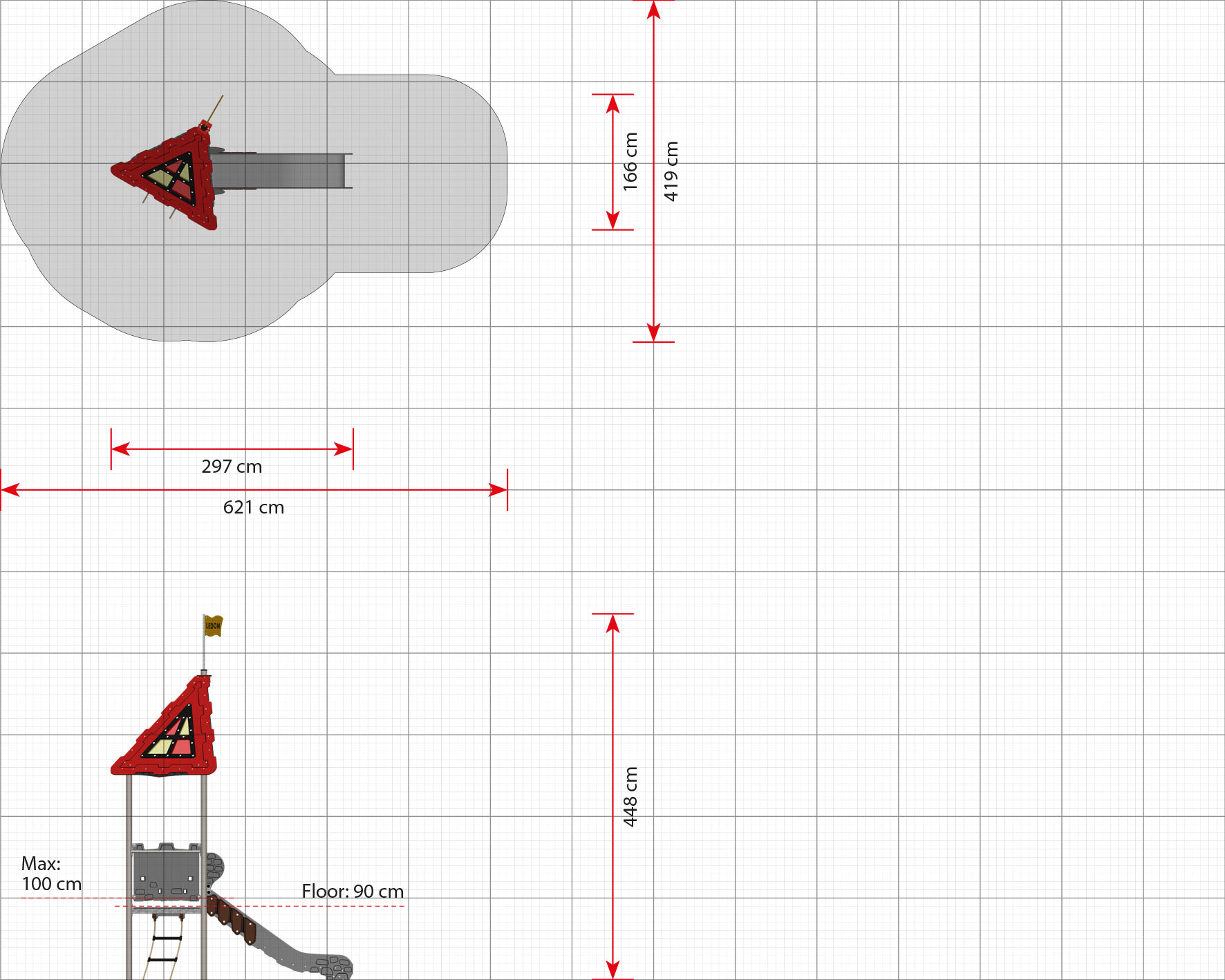 Die Elemente, die Ziegelsteinen, Fackeln und Brettern nachempfundenen wurden, erschaffen den glaubhaften Eindruck, sich in einer echten Ritterburg aufzuhalten. Unterhalb des Bodens befindet sich eine Nische, in der „Diamanten“ versteckt und gefunden werden können. Solche Aktivitäten stärken die Feinmotorik, Kreativität und kognitiven Fähigkeiten der Kinder. Lancelot eignet sich für Spielplätze, auf denen nur wenig Platz ist – denn das Spielgerät benötigt eine Fläche von nur 6,2 x 4,2 Metern.