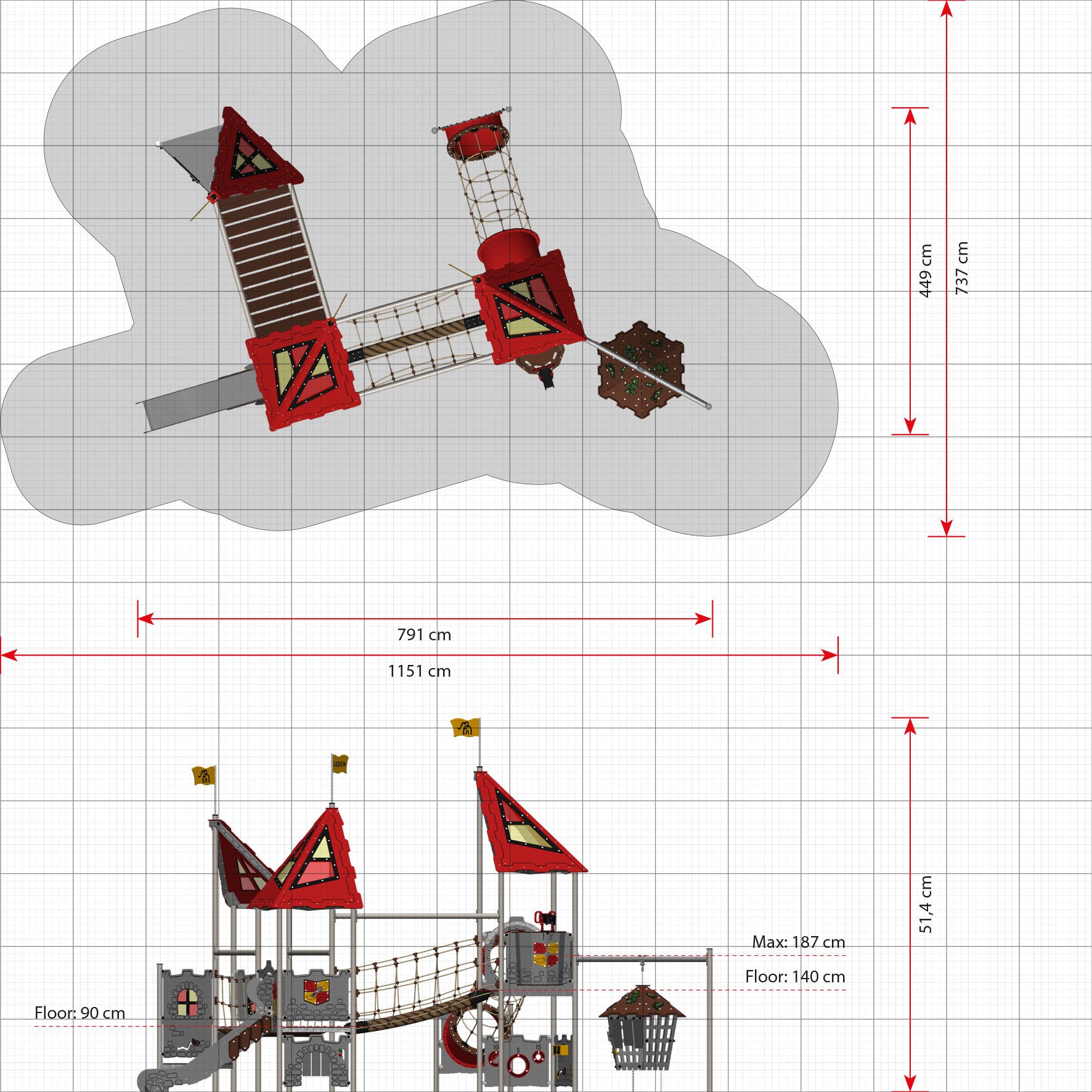 Pelleas ist ein wahres Ritterburgen-Universum für Kinder aller Altersstufen. Jede Ebene von Pelleas steckt voller altersgerechter Spielaktivitäten. Die Konstruktion aus drei Türmen verlangt den Kindern einiges ab, denn sowohl die schwingenden schrägen Hängebrücken als auch der Netztunnel stellen ihre Grobmotorik auf den Prüfstand. Alle beweglichen Teile, zum Beispiel rund um die Schatztruhe, stimulieren die Feinmotorik. Sie sollen aber auch die Fantasie anregen und zu Rollenspielen animieren, bei denen Kinder die ersten sozialen Regeln erlernen, Grenzen austesten und erste Konflikte lösen. Darüber hinaus bietet die Spielanlage Pelleas einen hängenden Kerker, mehrere verschiedene Spielwände auf Bodenhöhe, einen Ausguck mit beweglichem Teleskop, eine Rutsche und vieles mehr.