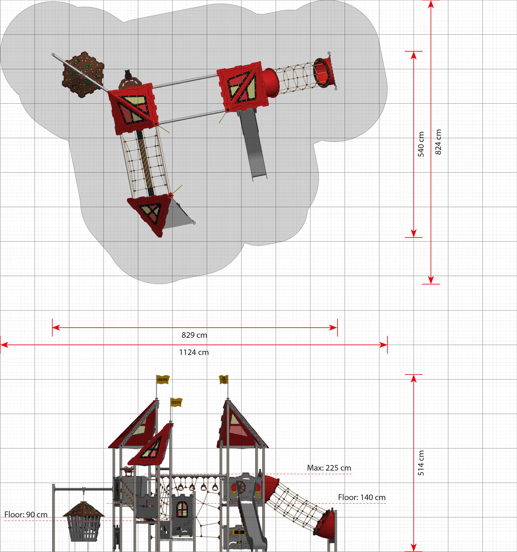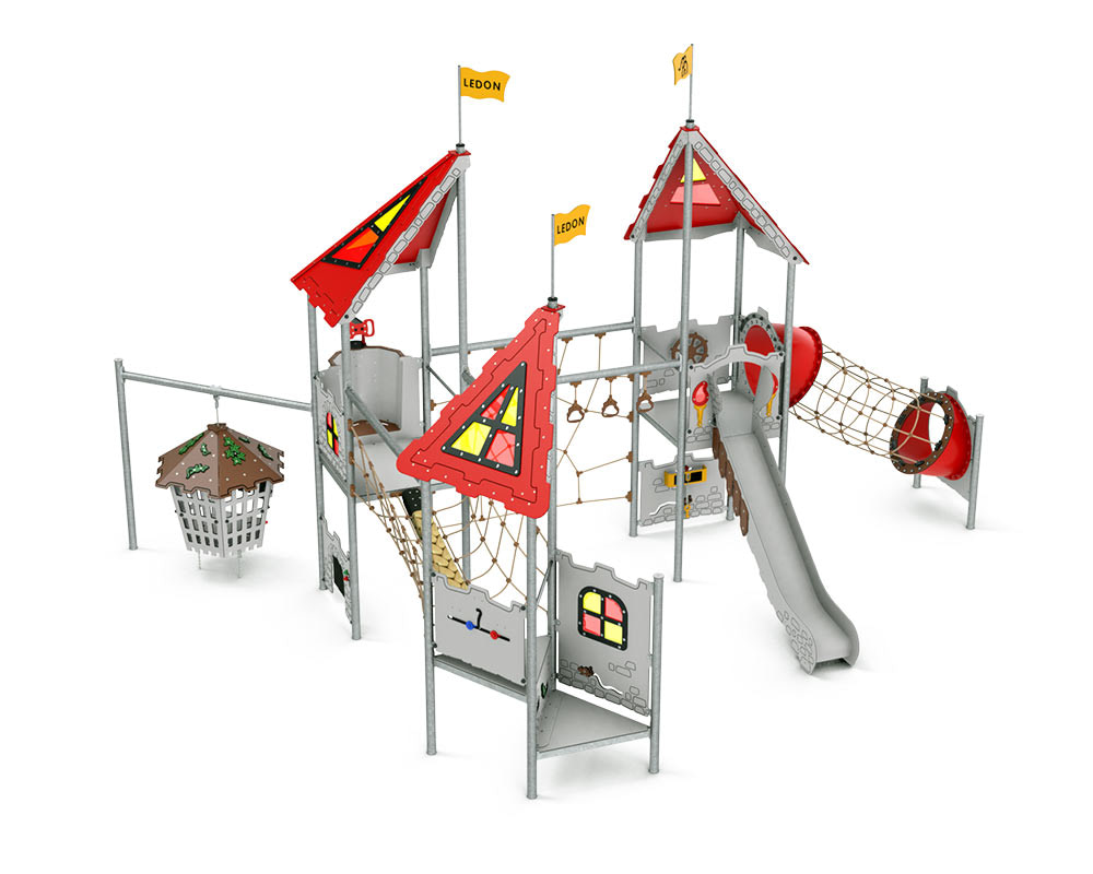Merlin ist eine der Burgen mit drei Türmen aus der Castle-Serie, die selbst die energiegeladensten Prinzen und Prinzessinnen auf die Probe stellt. Neben dem Netztunnel enthält Merlin ein Kletternetz, Hängegriffe, eine Rutsche, eine schwingende Hängebrücke sowie einen hängenden Kerker. Merlins Dächer tragen ebenfalls zur Gesamterfahrung bei. Durch gelbe und rote transparente Scheiben im Dach entstehen je nach Sonnenstand unterschiedliche Muster auf dem Boden, die zum Spielen von „Himmel und Hölle“ einladen. Die Schatten verändern sich ständig, während die Gesichter der Kinder in rotes und gelbes Licht getaucht werden. Merlin ist ein glaubwürdiges Ritterburgen-Universum, das die natürliche Entwicklung der Kinder unterstützt.