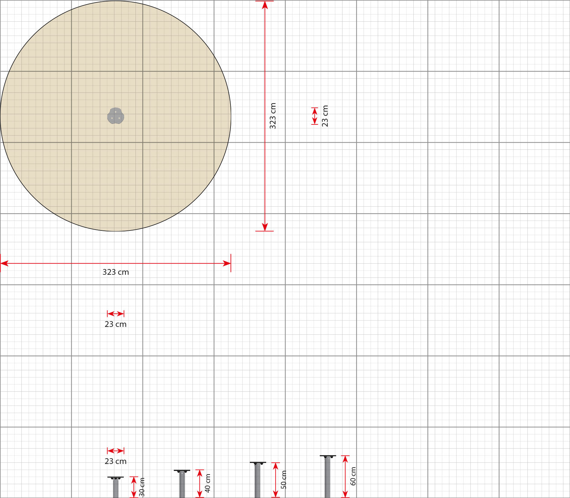 Sicherheitsabständen (L×B)323 x 323 cm