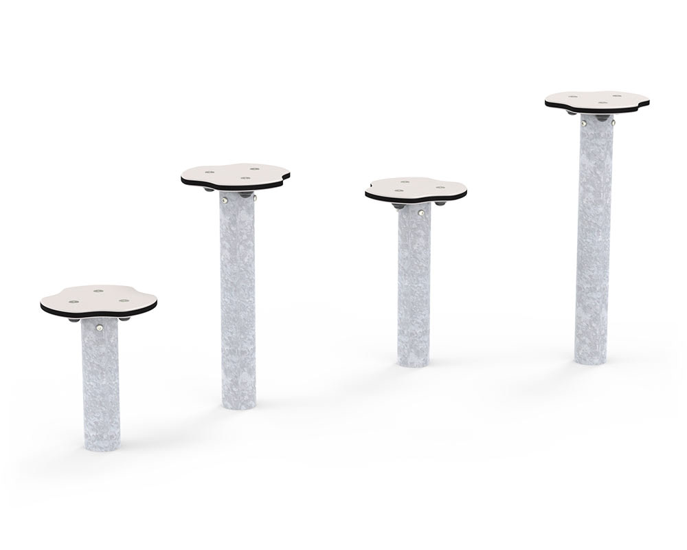 Die Trittsteine der Pirates-Serie sind die perfekte Wahl, um die Piratenwelt mit einem vorhandenen Spielplatz zu verbinden. Auf diese Weise können die Spielgeräte Teil eines größeren Balancierparcours werden. Die Trittsteine sind in vier verschiedenen Höhen erhältlich. So ist es möglich, einen Balancierparcours für Kinder aller Altersgruppen zu gestalten. Die Trittsteine werden häufig für Spiele wie „Der Boden ist Lava“, „Fangen“ oder auch für Wettrennen genutzt. Wenn die Kinder von einem Trittstein auf den nächsten springen, trainieren sie dabei ihre Grobmotorik, ihre Balance und ihre Koordination. Die Pfosten aus verzinktem Stahl bieten eine robuste und wartungsfreie Konstruktion. Darüber hinaus besitzen sie eine rutschfeste Oberfläche.