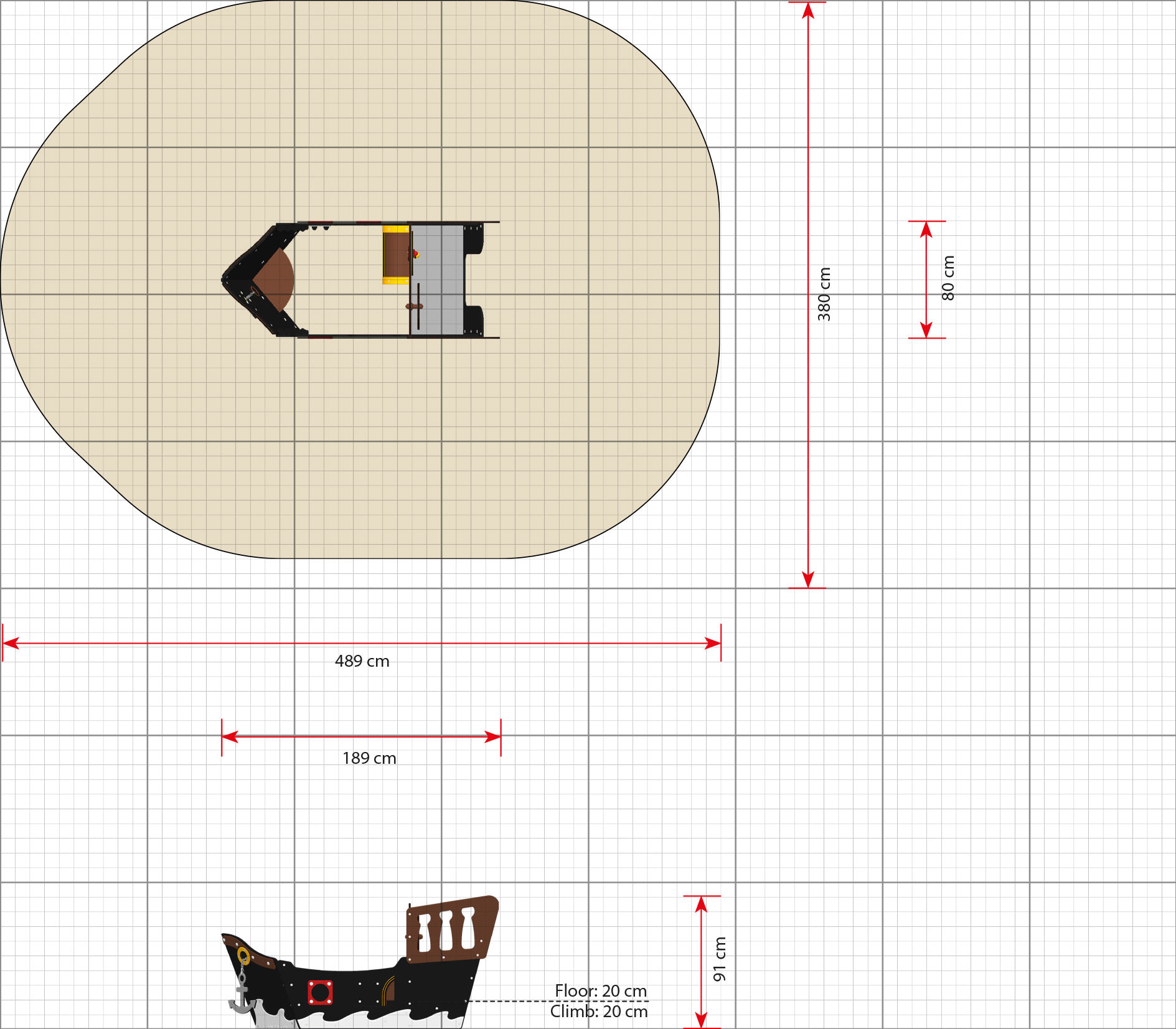 Einer der großen Vorzüge des Piratenschiffs Sally ist, dass es zu 98 Prozent vormontiert und auf nur einer einzigen Palette geliefert werden kann. Es muss nur noch der Erdanker montiert werden, sofern dieser erforderlich ist. Das Schiff kann auch ohne Sicherung aufgestellt werden, sodass es bewegt oder im Winter nach drinnen geholt werden kann. Die Materialien, aus denen Sally gefertigt wurde, sind zu 100 Prozent wiederverwendbar. Wird das Piratenschiff nicht mehr benötigt, kann es auf einem anderen Spielplatz wieder aufgestellt werden.
