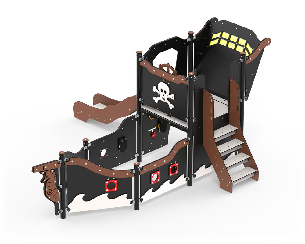Kleines Piratenschiff mit Treppe und Rutsche
