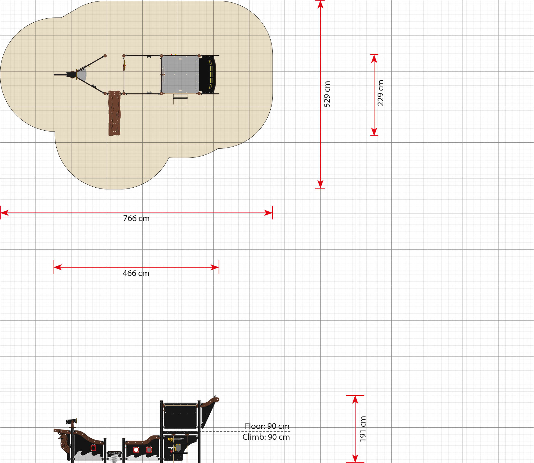 - Die Piratenschiffe sind in Bereiche unterteilt, sodass unterschiedliche Altersgruppen gleichzeitig dort spielen können, ohne einander zu stören.