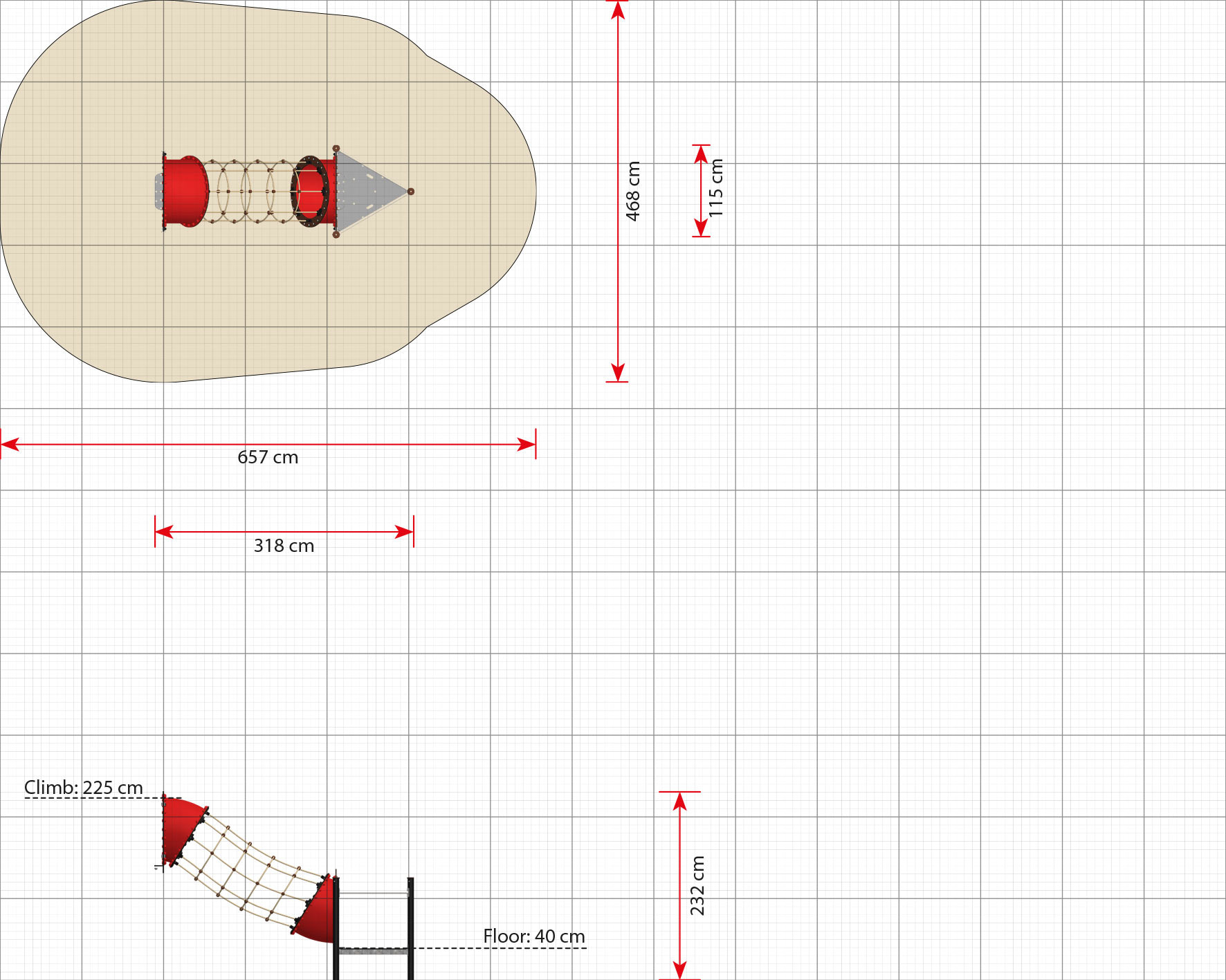 Netztunnel für Piratenschiffe mit einer Bodenhöhe von 140 cm
