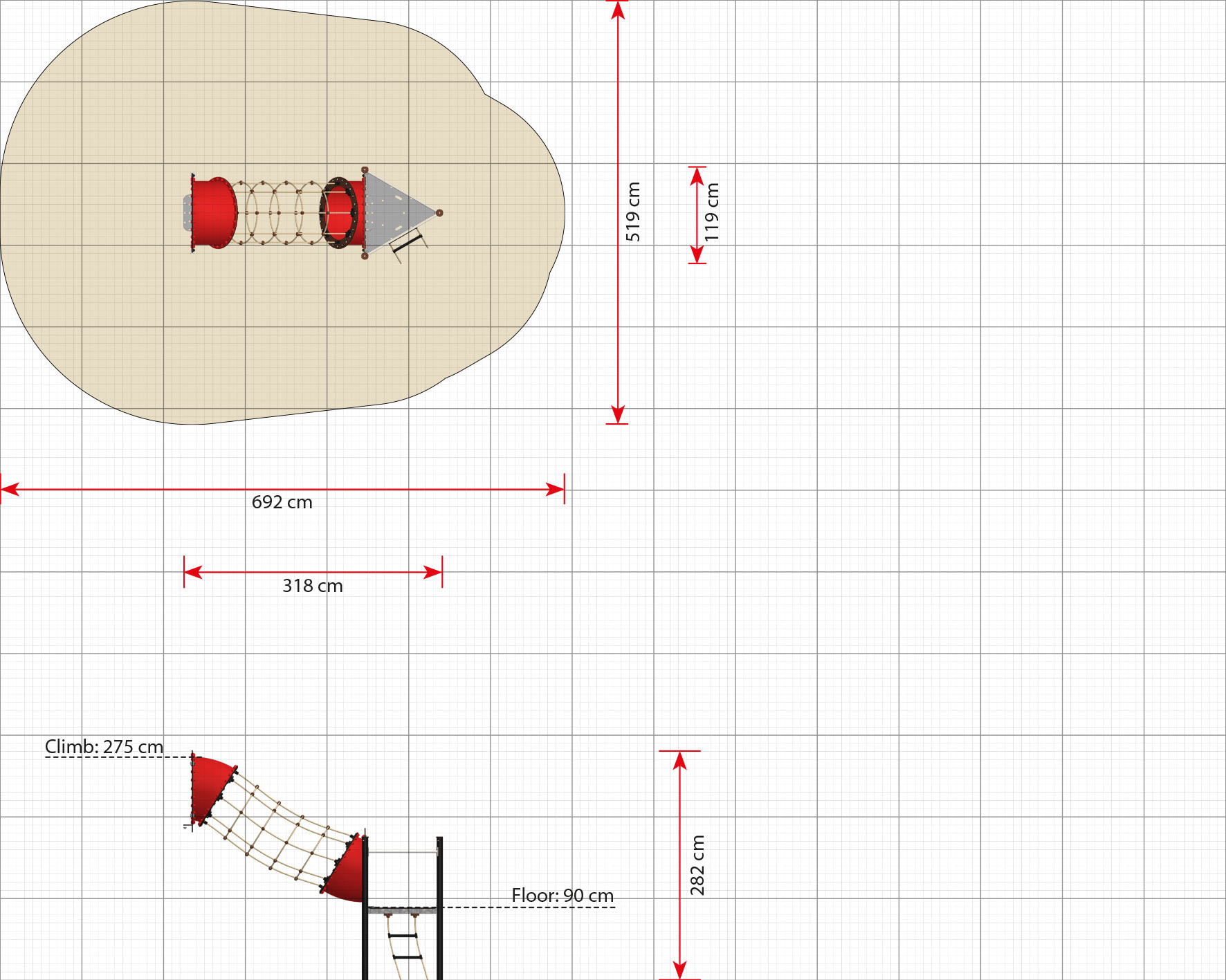 Netztunnel für Piratenschiffe mit einer Bodenhöhe von 190 cm