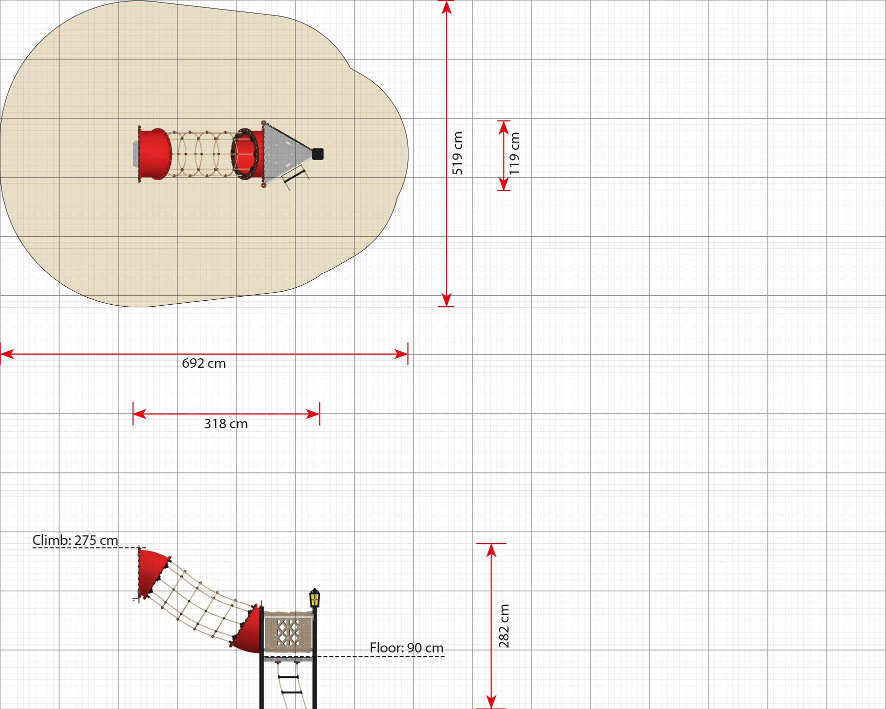 Netztunnel für Piratenschiffe mit einer Bodenhöhe von 190 cm