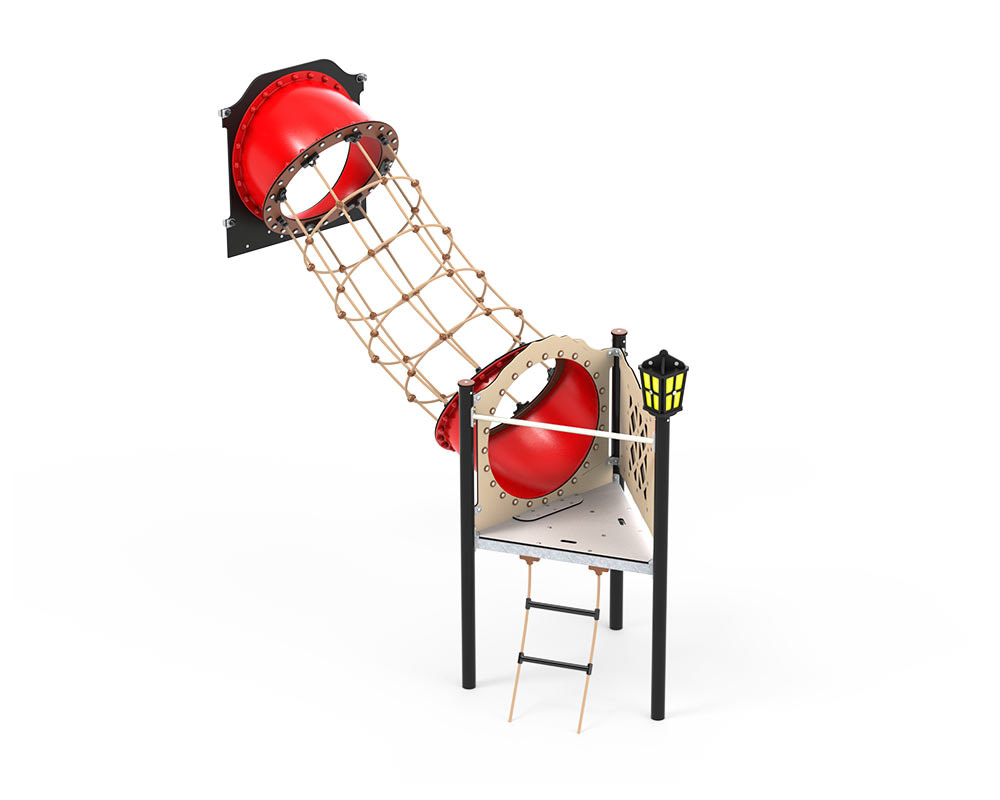 Die Pirates-Serie enthält auch einen Netztunnel für Ihr Piratenschiff. Der Netztunnel bietet eine besonders ansprechende Möglichkeit, um das obere Achterdeck des Piratenschiffs zu erklimmen. Hinein gelangt man über eine Strickleiter. Im Netztunnel müssen die Kinder ihre Arme und Beine versetzt bewegen, um sich darin fortzubewegen. Dadurch werden die Nervenbahnen zwischen den Gehirnhälften stimuliert – genau dieser Teil des Gehirns wird auch beim Lesen- und Schreibenlernen gefordert.