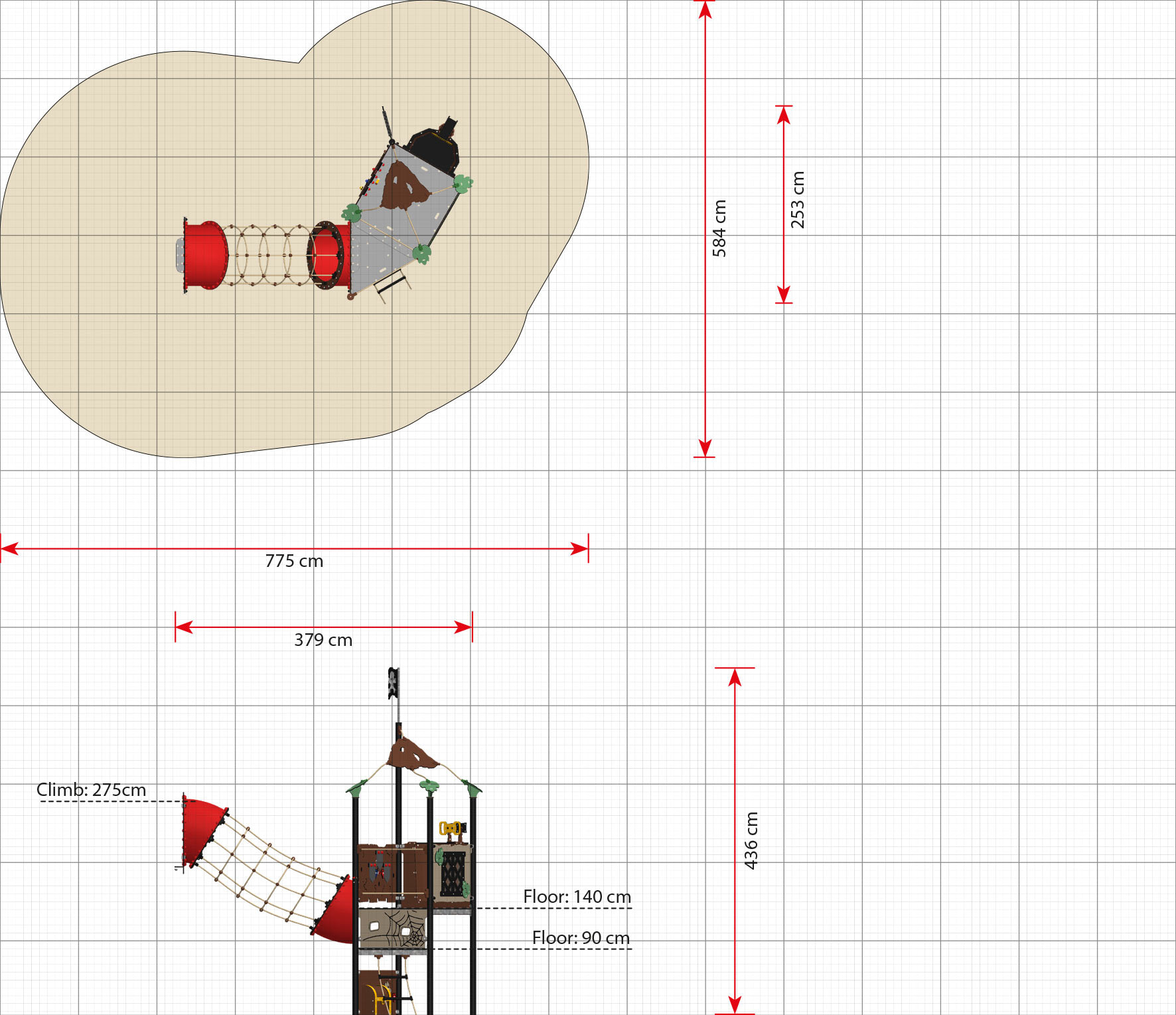 Die Pirates-Serie enthält auch einen Netztunnel für Ihr Piratenschiff. Der Netztunnel bietet eine besonders ansprechende Möglichkeit, um das obere Achterdeck des Piratenschiffs zu erklimmen. Im Netztunnel müssen die Kinder ihre Arme und Beine versetzt bewegen, um sich darin fortzubewegen. Dadurch werden die Nervenbahnen zwischen den Gehirnhälften stimuliert – genau dieser Teil des Gehirns wird auch beim Lesen- und Schreibenlernen gefordert. Helena ist mehr als nur ein Netztunnel – und zwar ein ganzer Spielturm mit vielen tollen Aktivitäten. In dem Spielturm gibt es versteckte Diamanten und eine Schatztruhe zu entdecken. Die Kinder können aber auch den Ausguck mit beweglichem Fernrohr erklimmen.
