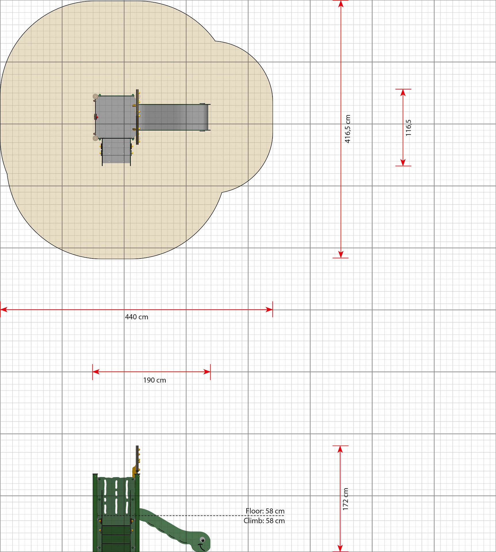 - Die Höhen wurden so ausgelegt, dass es Erwachsenen möglich ist, die Kinder beim Spielen zu unterstützen.
