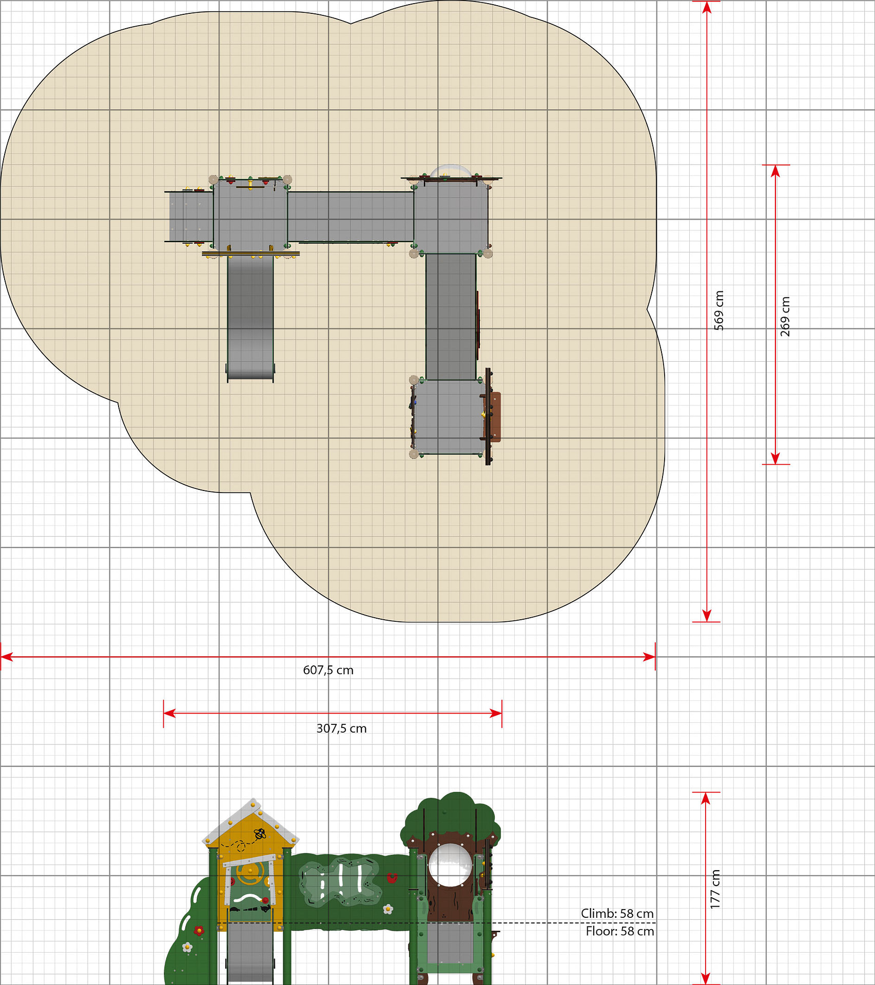 - Die Höhen wurden so ausgelegt, dass es Erwachsenen möglich ist, die Kinder beim Spielen zu unterstützen.