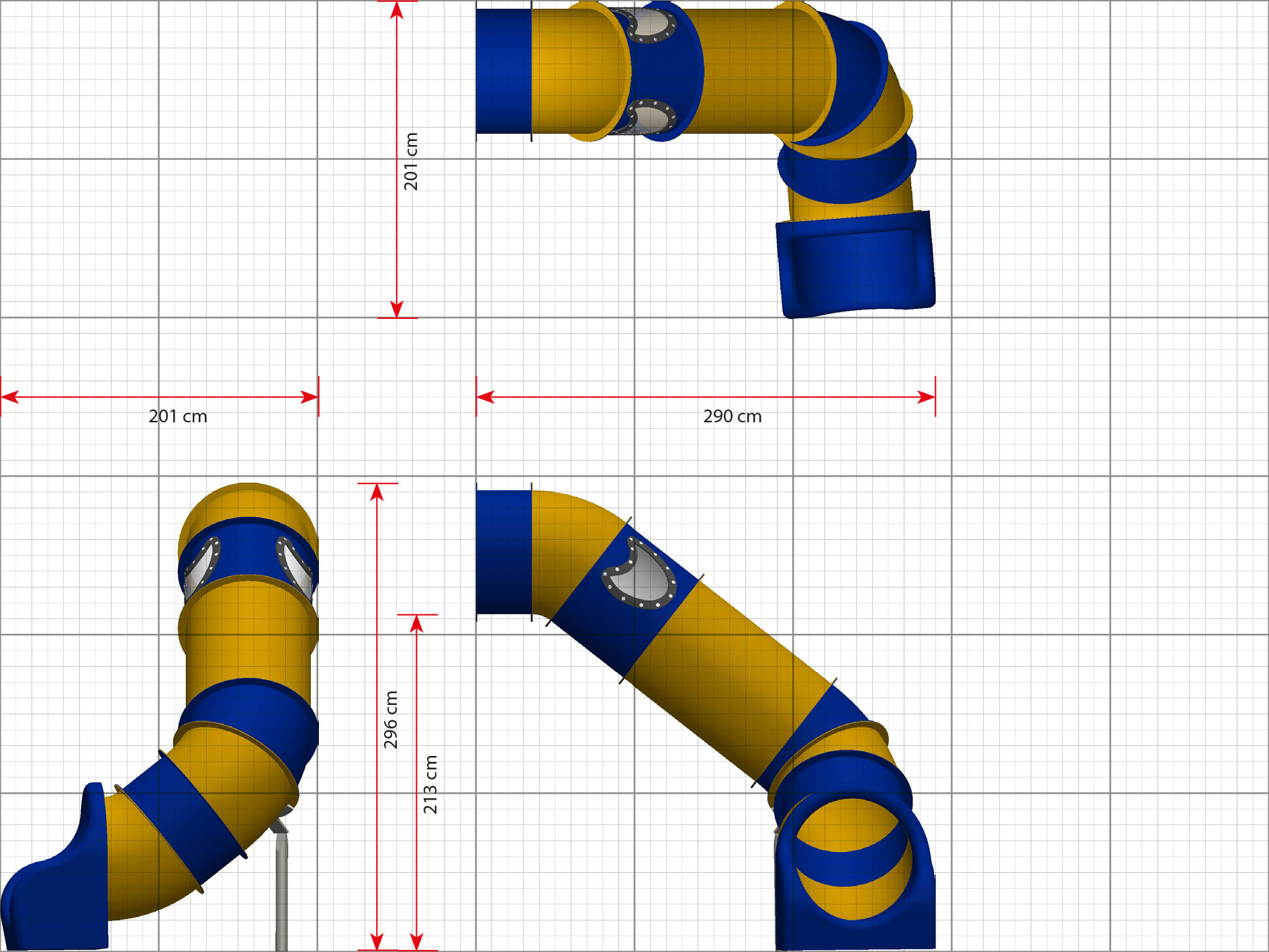 Unsere Standard-Röhrenrutschen können jederzeit an Ihre Wünsche und Bedürfnisse angepasst werden. Die Röhrenrutschen haben unzählige Gestaltungsmöglichkeiten und Anfangshöhen, so dass wir sie speziell für jedes Projekt anpassen können.