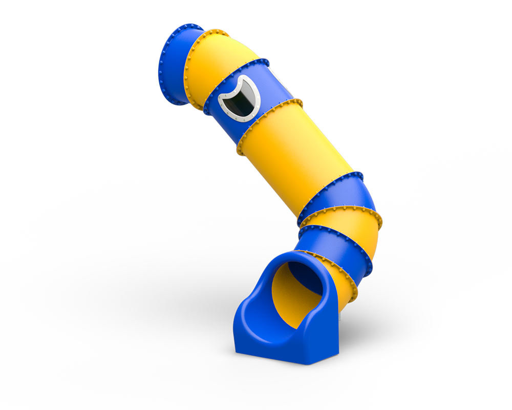 Unsere Röhrenrutschen sind in einer breiten Auswahl an Farben, Größen und Formen erhältlich. Darüber hinaus sind auch zahlreiche Details sowie zusätzliches Zubehör lieferbar. Dieses Modell zum Beispiel hat ein Fenster auf der Oberseite der Röhrenrutsche, um mehr Licht hineinzulassen, wenn die Kinder sich in Position bringen. Ein Fenster – oder gleich mehrere – ist bzw. sind eine gute Idee für Röhrenrutschen mit Spiralen, weil anders als bei geraden Röhren kaum Licht von unten einfällt.
