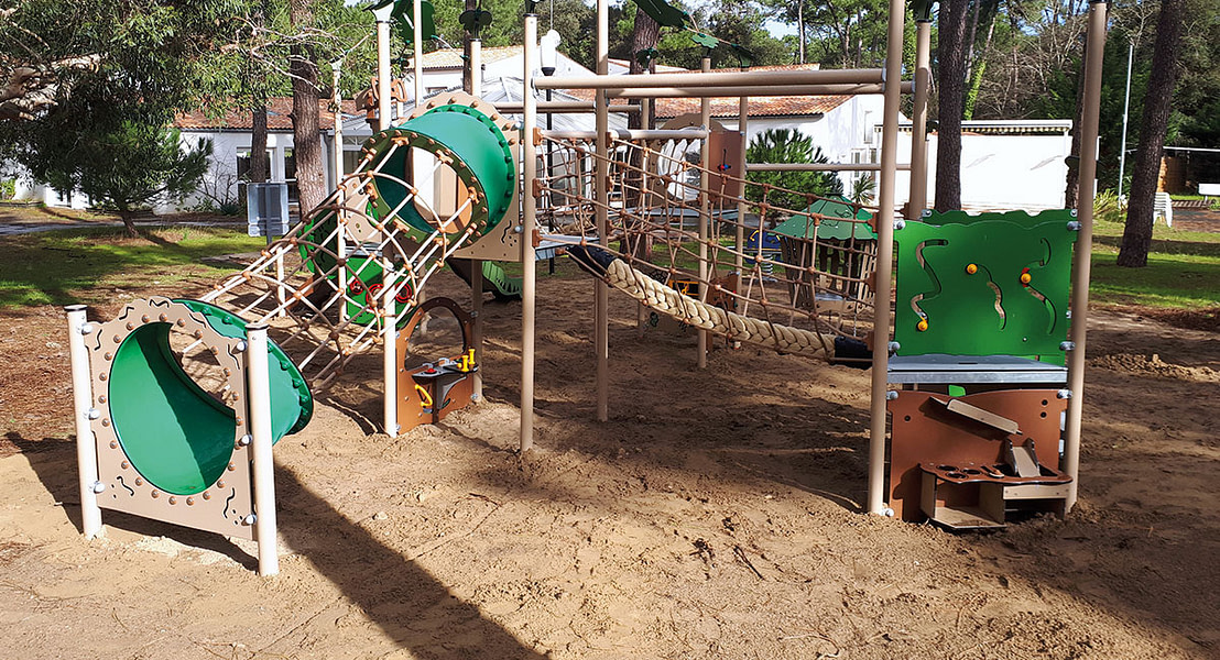 Auf diesem Spielplatz in Frankreich können sich Kinder nun auf einer unserer größten Explore-Spielanlagen austoben. Die Titan-Spielanlage befindet sich inmitten eines großen Spielplatzes und ist umgeben von mehreren Federwippgeräten und einer Wippe.