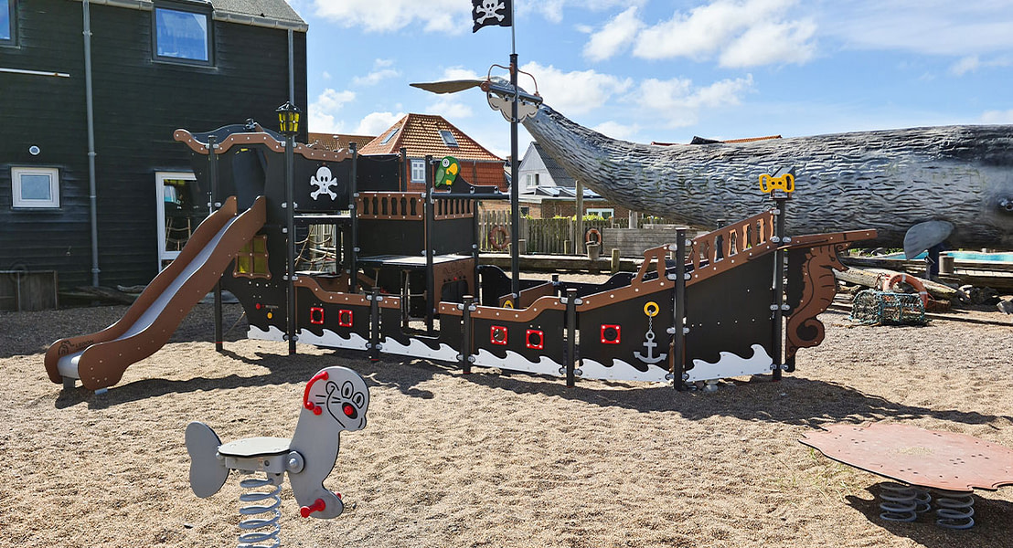 Das JyllandsAkvariet im dänischen Thyborøn kann Kinder auf seinem Spielplatz jetzt auf dem großen Piratenschiff aus der Produktreihe LEDON Pirates begrüßen. Das JyllandsAkvariet wollte ein Schiff, das die Aufmerksamkeit der Besucherinnen und Besucher auf sich zieht, sobald sie das Aquarium betreten. Außerdem sollte das Schiff die Spiele der Kinder als Teil ihres Erlebnisses, Fische aus der Nordsee und dem Limfjorden aus nächster Nähe zu sehen, noch weiter inspirieren.