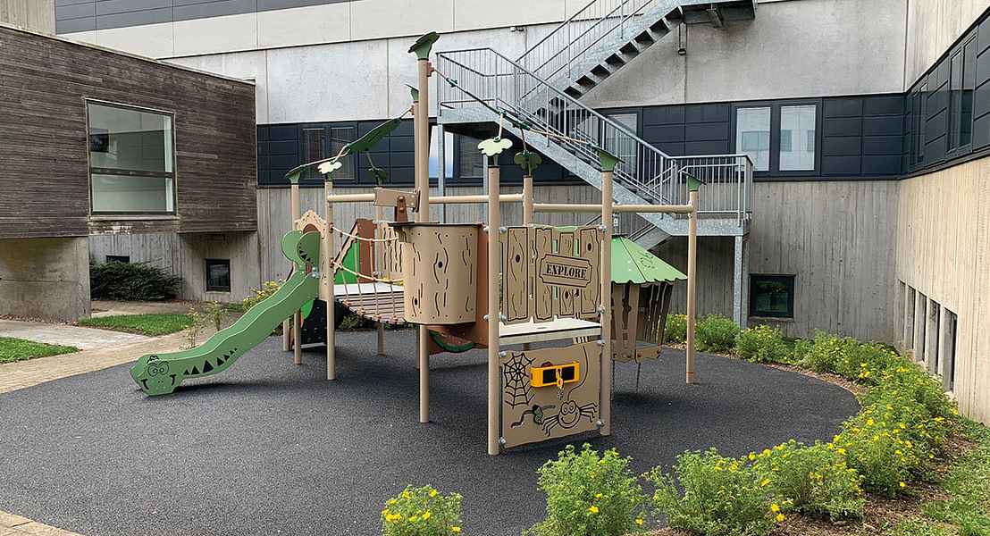 Mit diesem Projekt sollte ein gemeinschaftlich genutzter Außenbereich entstehen, wo die kleinen Patienten und ihre Familien einen Ort zum Durchatmen finden. Gleichzeitig musste der Spielplatz wartungsfrei sein, um den Zeit- und Kostenaufwand so gering wie möglich zu halten.