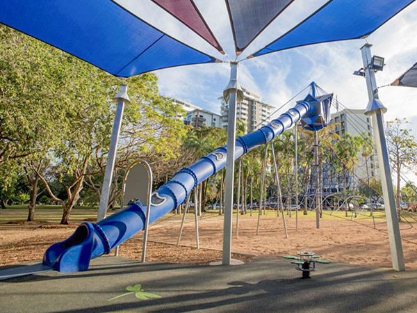 Entwickelt für warme Temperaturen, sodass sie im Gegensatz zu Stahlrutschen auch bei direkter Sonneneinstrahlung nicht überhitzen.