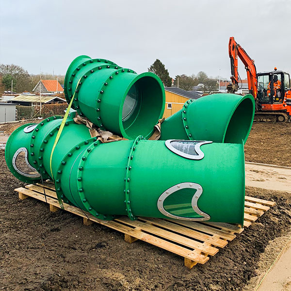 Mit den von uns verwendeten Materialien und unseren flexiblen Lösungen sind wir heute in der Lage, die hochwertigsten Röhrenrutschen für Spielplätze anzubieten, die auf dem gesamten Markt erhältlich sind. Alle Spielanlagen können um diese Röhrenrutschen erweitert werden, die sich besonders gut als Hangrutschen eignen. Selbst wenn nur wenig Platz zur Verfügung steht, können wir mithilfe der engen Kurven aufregende Lösungen schaffen.