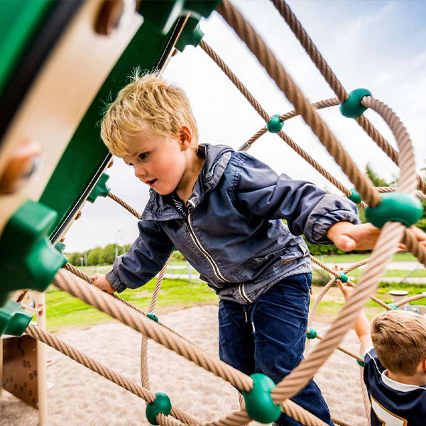 Aber auch unsere Kletternetze sorgen für viel Abenteuer beim Erklimmen der Hindernisse, gleichzeitig werden dadurch auch die Motorik und der Gleichgewichtssinn trainiert. Bei einer solchen Aktivität werden dieselben Bereiche im Gehirn angesprochen, die später für die Entwicklung der Lernfähigkeit entscheidend sind.