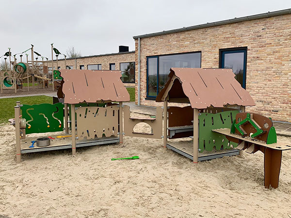 Kleine und große Spielhäuser, in denen zwischen 5 und 20 Kinder Platz finden.