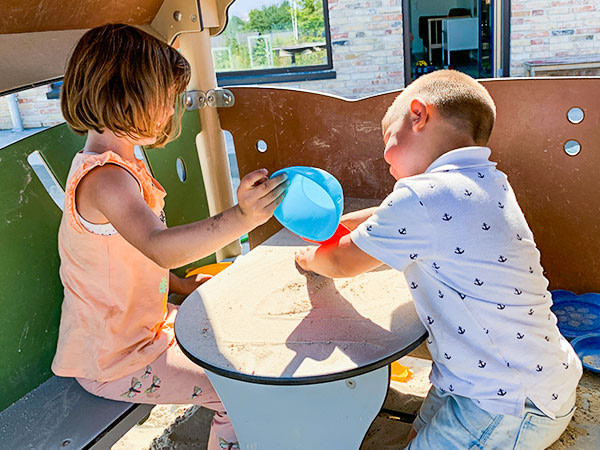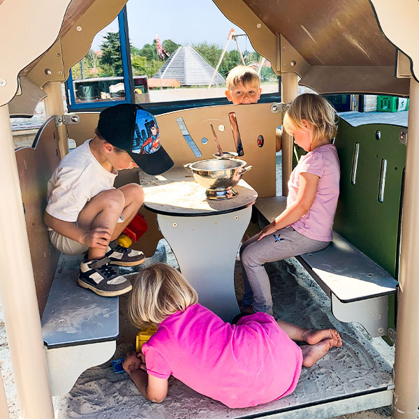 Kinder lieben Wasser und Sand – und das Spielen im Spielhaus beinhaltet häufig das Formen von Dingen aus Sand. Das können Kuchen sein, die am Kiosk verkauft werden sollen, oder eine Rennstrecke auf dem Spielhaustisch, da gibt es keine Grenzen. Das Spiel mit Sand bringt nicht nur Spaß, es birgt auch ein erhebliches Lernpotenzial.